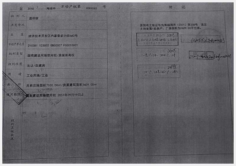 183號 海城經(jīng)濟(jì)開發(fā)區(qū)冉家委后力街682號房產(chǎn)及土地使用權(quán)