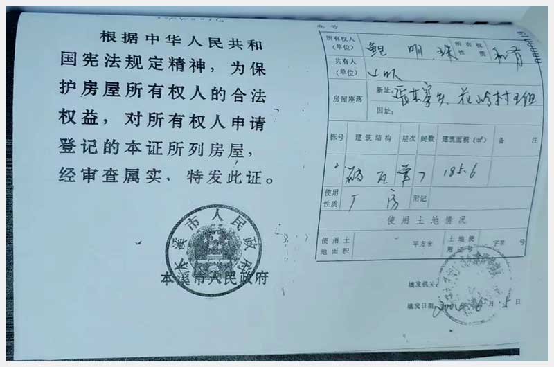 6號(hào) 本溪市溪湖區(qū)張其寨鄉(xiāng)花嶺村5組房產(chǎn)及土地使用權(quán)