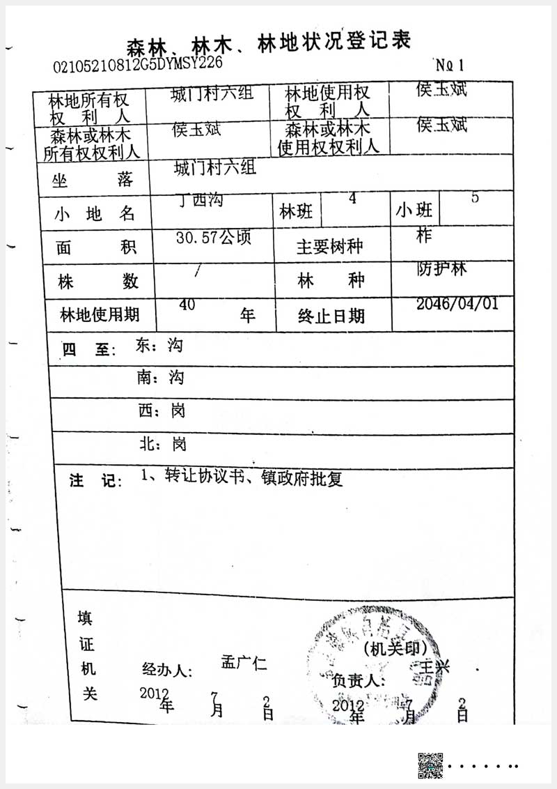 160號(hào) 本溪滿族自治縣城門村六組林權(quán)