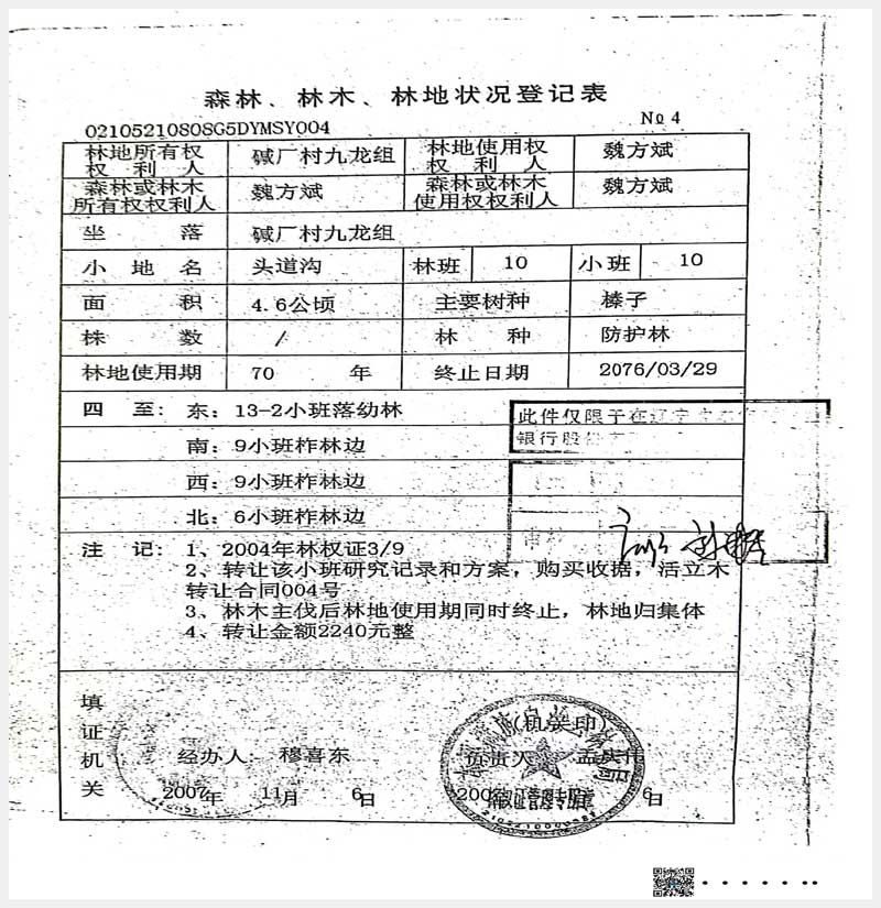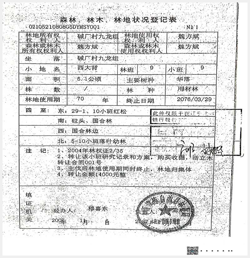 名稱:本溪滿族自治縣堿廠鎮(zhèn)九龍組林權(quán) 面積:17.6公頃 瀏覽次數(shù):690