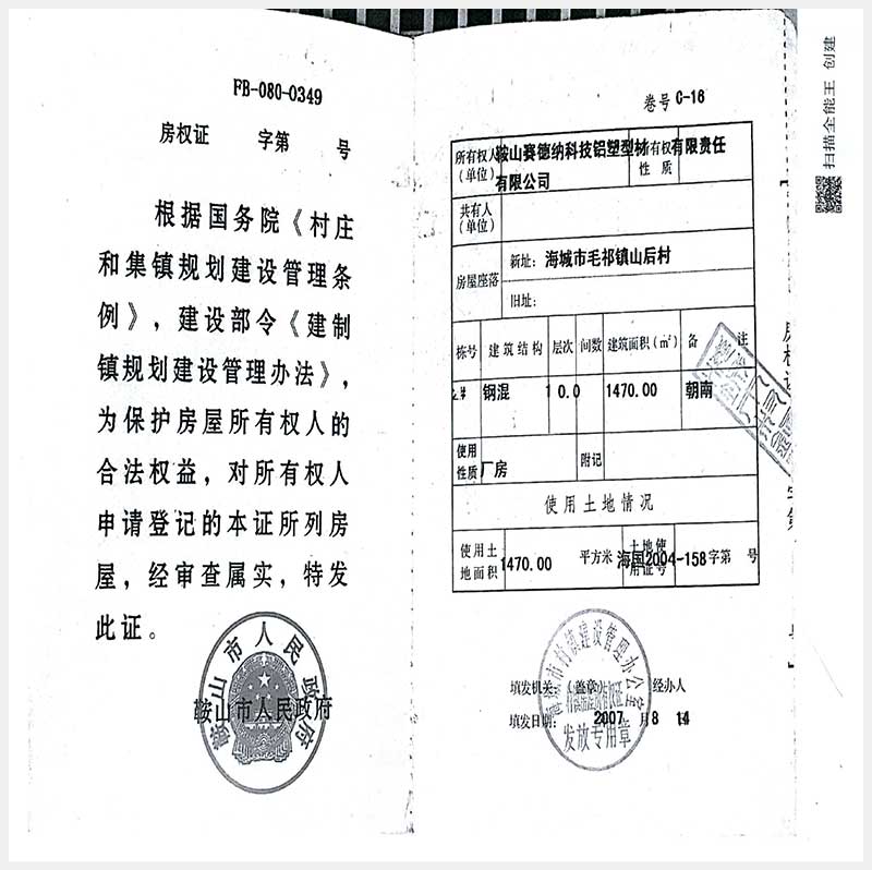名稱:海城市毛祁鎮(zhèn)山后村房產(chǎn)及土地使用權(quán) 面積:房產(chǎn):14539.74㎡;土地:9300㎡ 瀏覽次數(shù):262