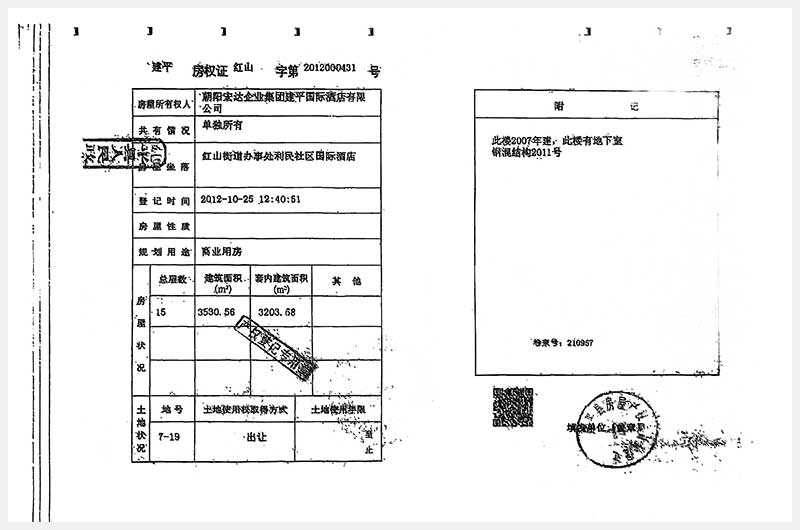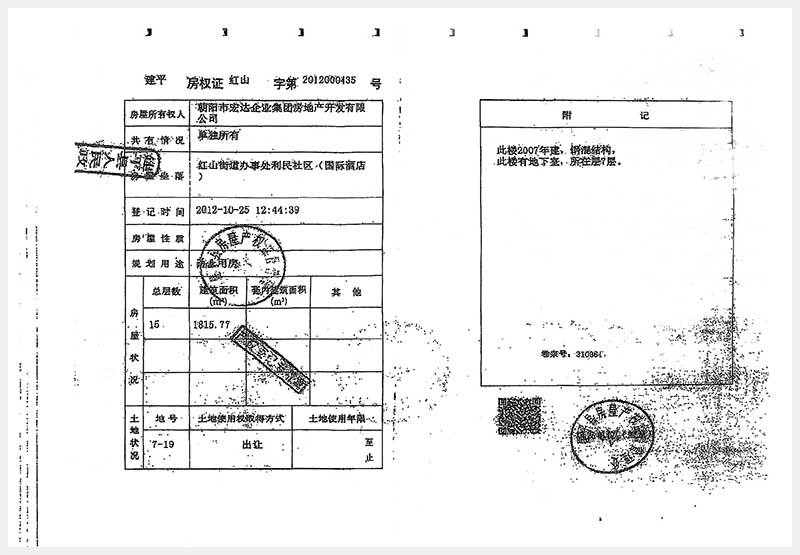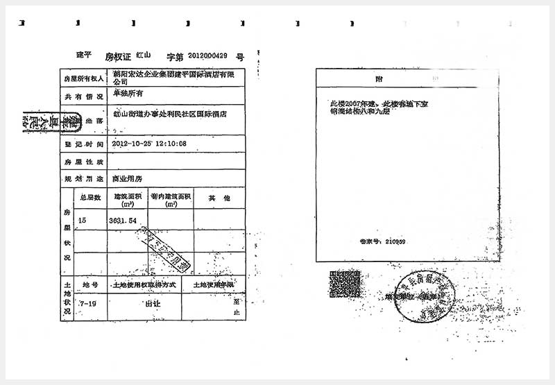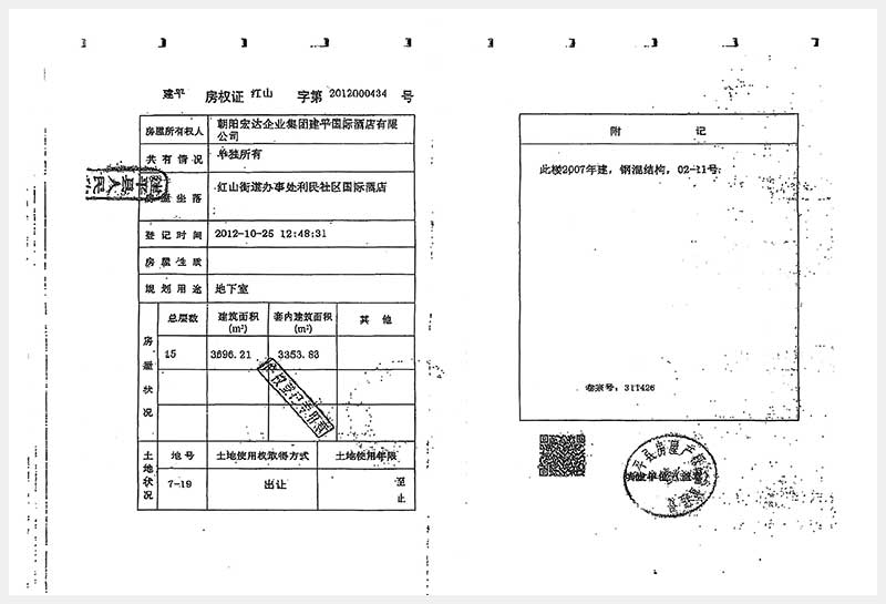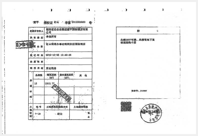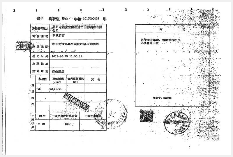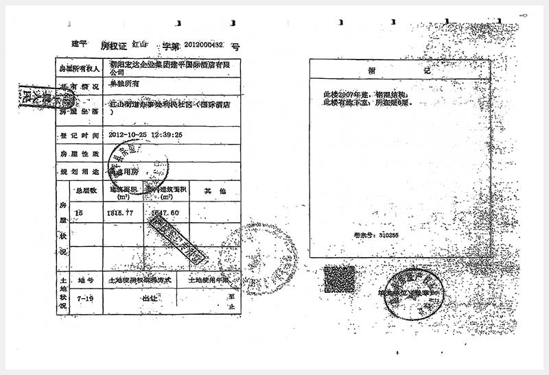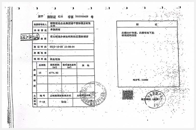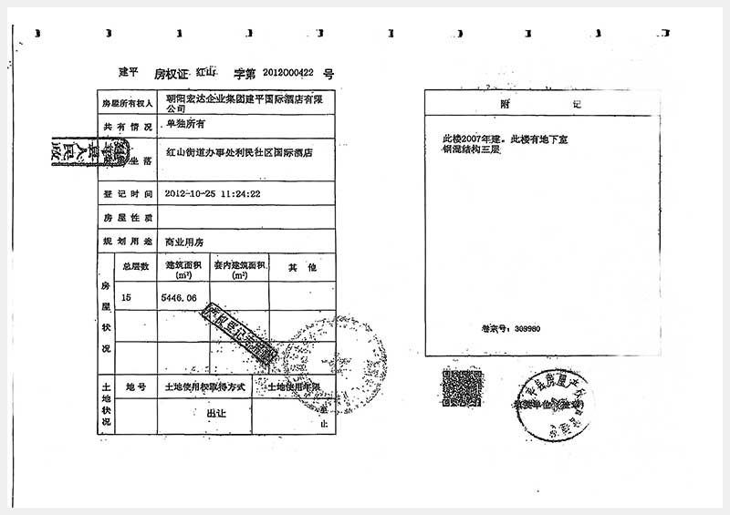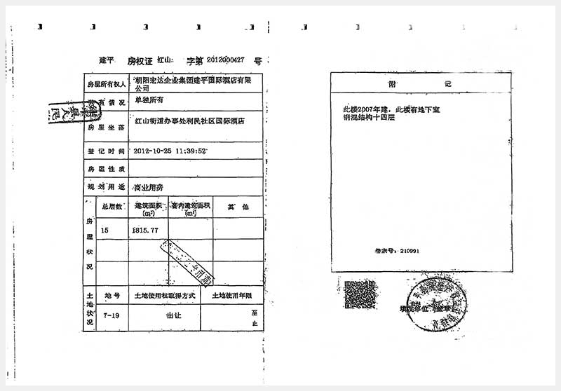 274號(hào) 朝陽市建平縣紅山街道辦事處利民社區(qū)國(guó)際酒店房產(chǎn)及土地使用權(quán)