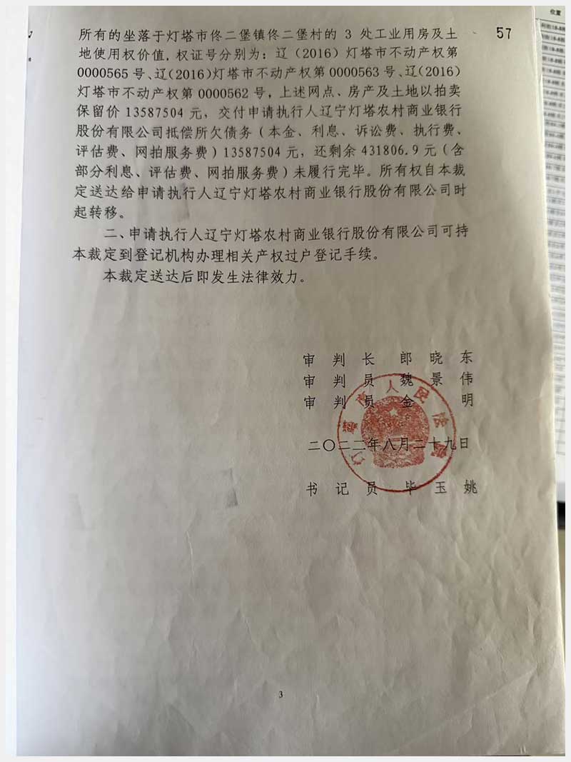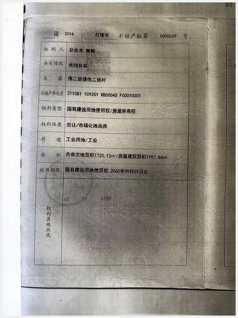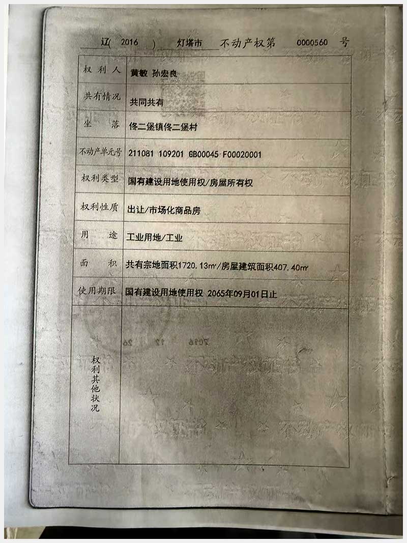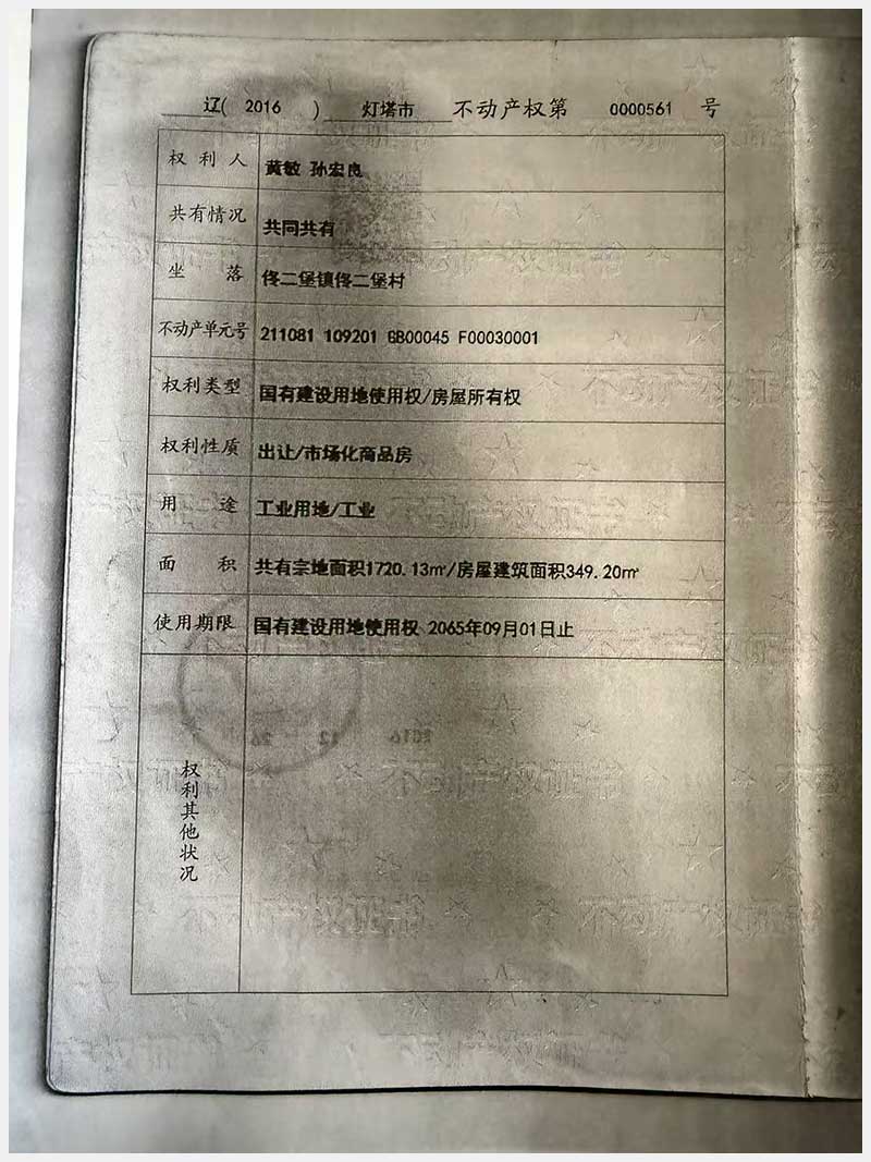 名稱:燈塔市佟二堡鎮(zhèn)佟二堡村房產(chǎn)及土地使用權(quán) 面積:房產(chǎn):1954.46㎡;土地:1720.13㎡ 瀏覽次數(shù):43