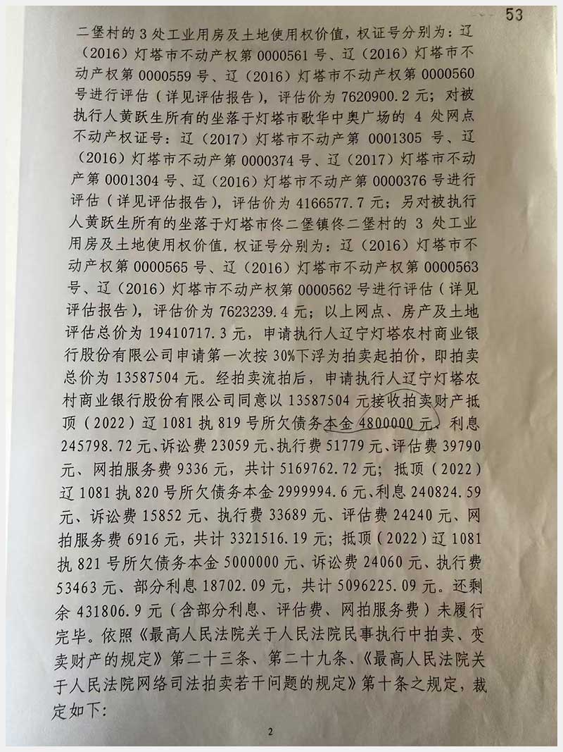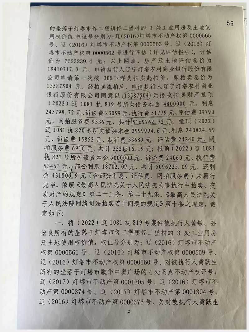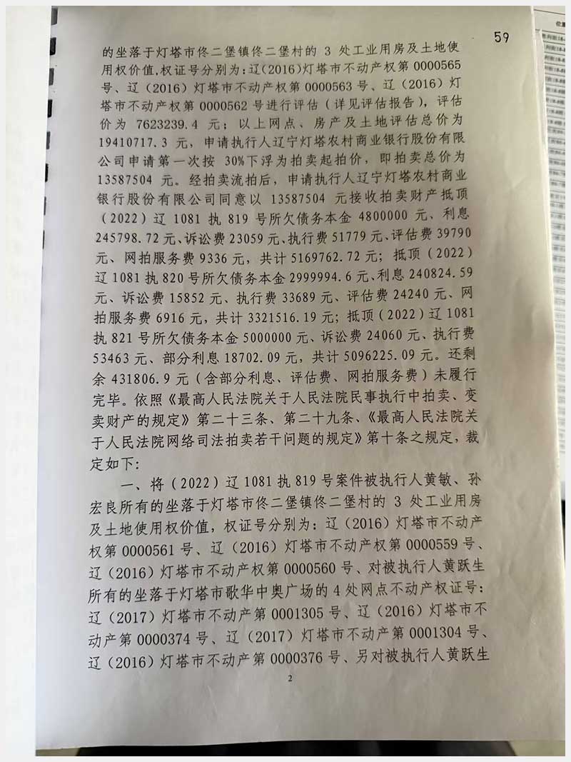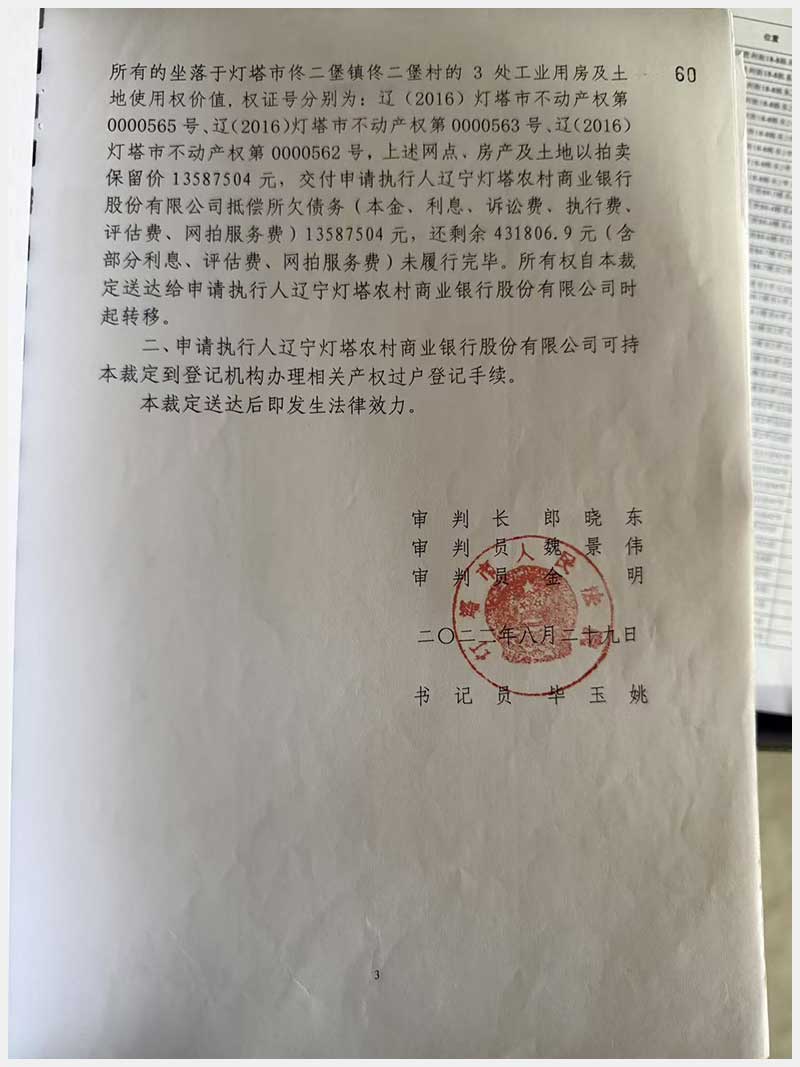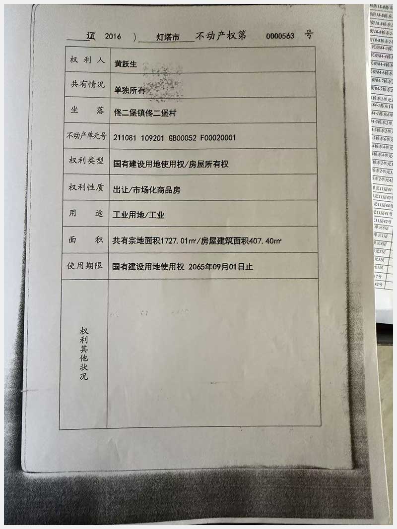 名稱:燈塔市佟二堡鎮(zhèn)佟二堡村房產(chǎn)及土地使用權(quán) 面積:房產(chǎn):1954.46㎡;土地:1720.13㎡ 瀏覽次數(shù):43