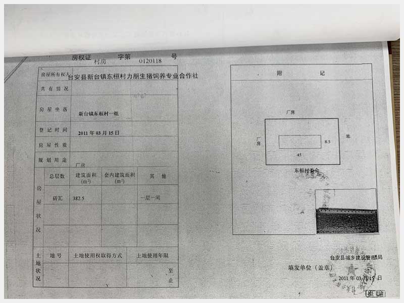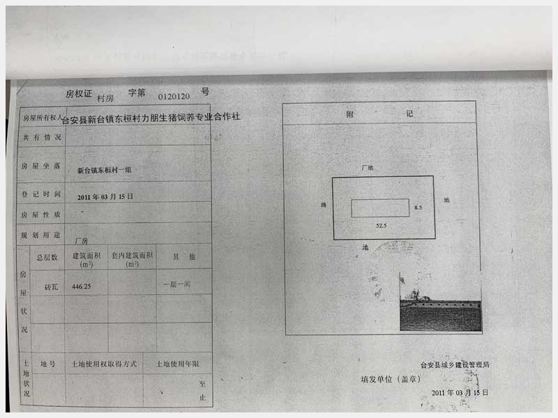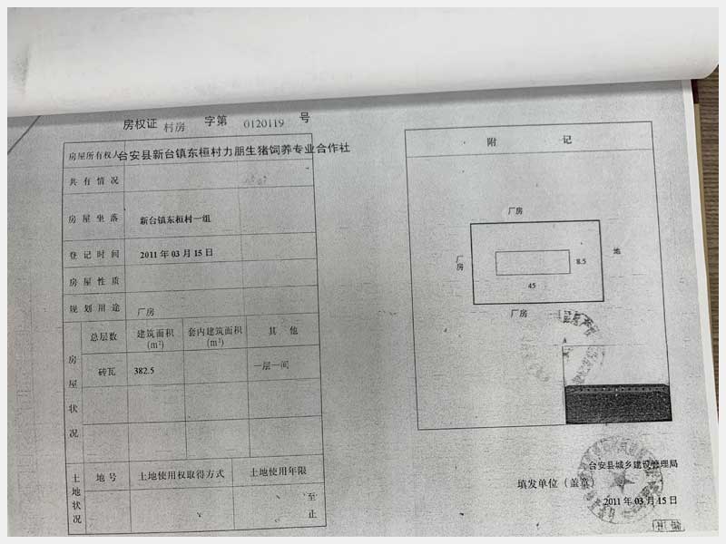 8號(hào) 新臺(tái)鎮(zhèn)東桓村朋興養(yǎng)殖場(chǎng)15處房產(chǎn)及土地