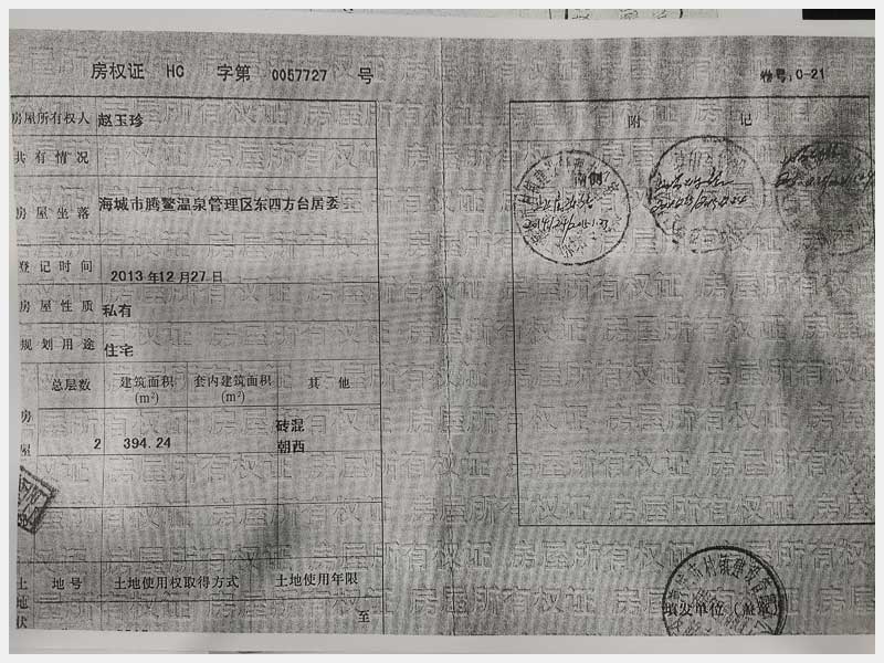 名稱:海城市騰鰲溫泉管理區(qū)東四方臺居委會房產(chǎn) 面積:394.24㎡ 瀏覽次數(shù):1321