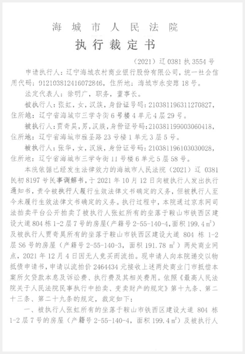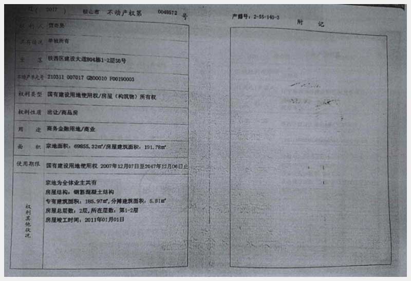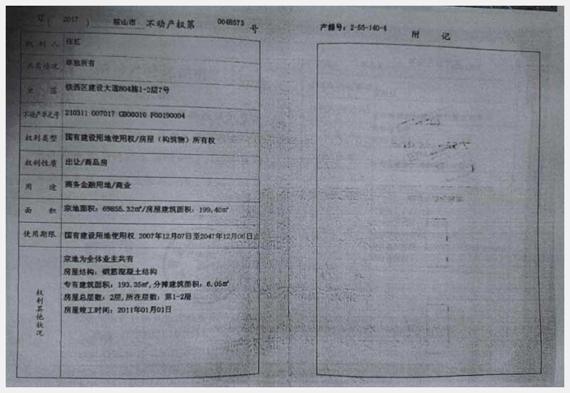 地址:鞍山市鐵西區(qū)建設(shè)大道804棟 標(biāo)的號(hào):168