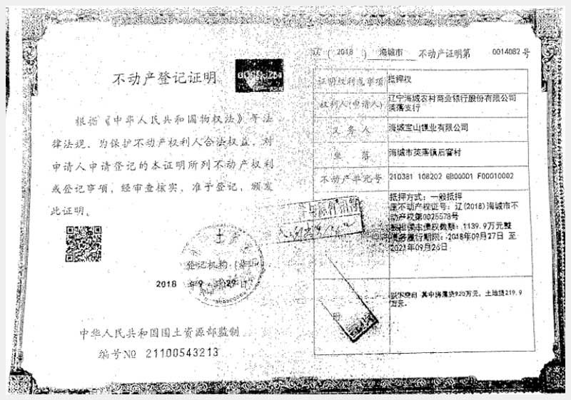 181號 海城市英落鎮(zhèn)后窨村房產(chǎn)、土地使用權(quán)及機器設(shè)備