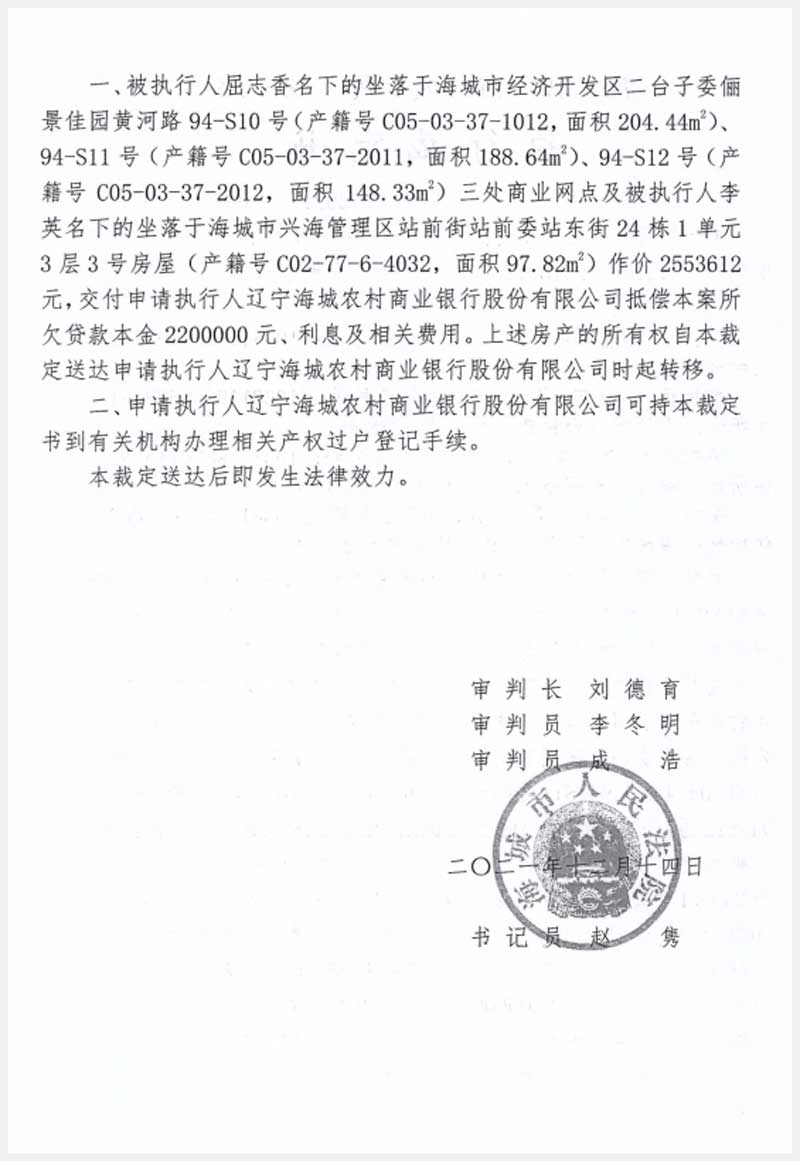 186-1號(hào) 海城經(jīng)濟(jì)技術(shù)開發(fā)區(qū)二臺(tái)子委儷景佳園黃河路94號(hào)3處房產(chǎn)