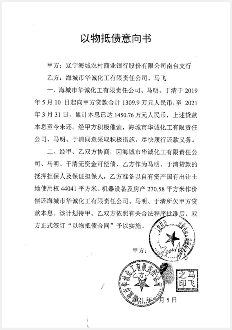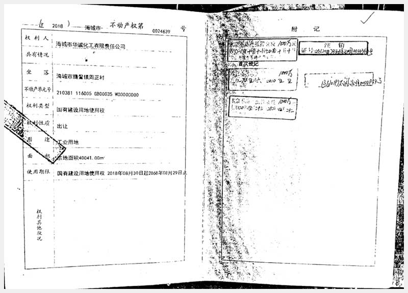 189-1號 海城市華誠華工有限責任公司名下土地及機器設備