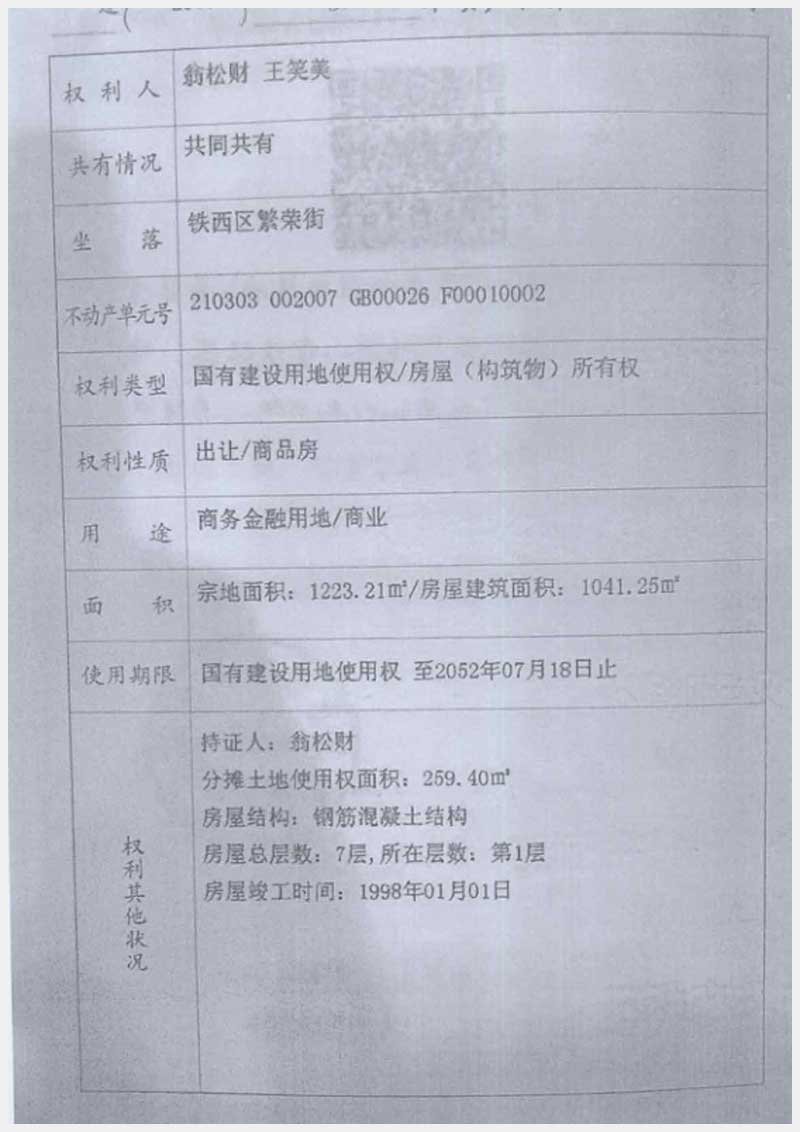 名稱:鞍山市鐵西區(qū)繁榮街房產(chǎn) 面積:1041.25㎡ 瀏覽次數(shù):1122