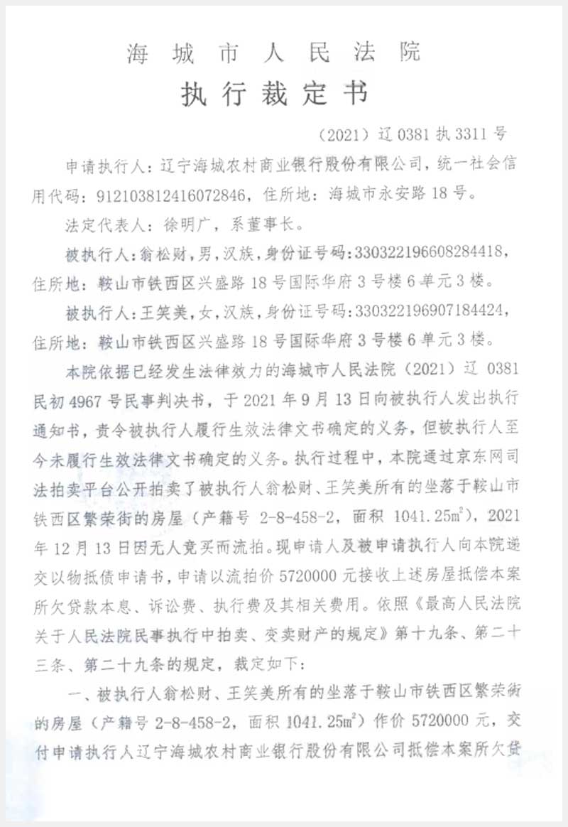 地址:鞍山市鐵西區(qū)繁榮街 標的號:191