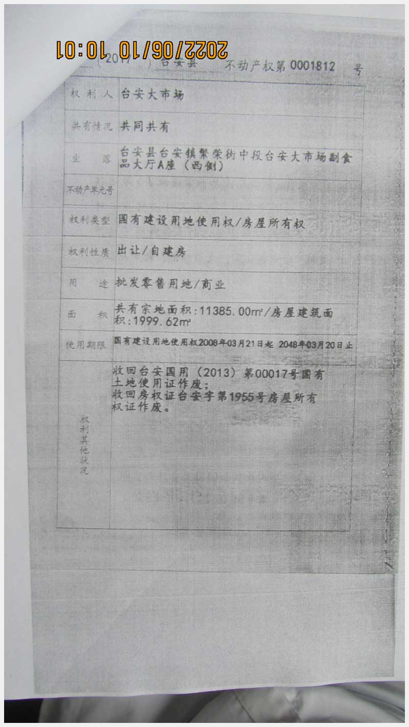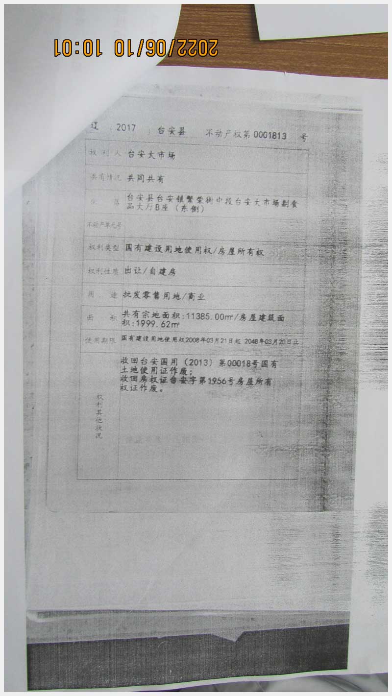91號 臺安縣繁榮街中段臺安大市場副食品大廳A座(西側(cè))、B座(東側(cè))房產(chǎn)