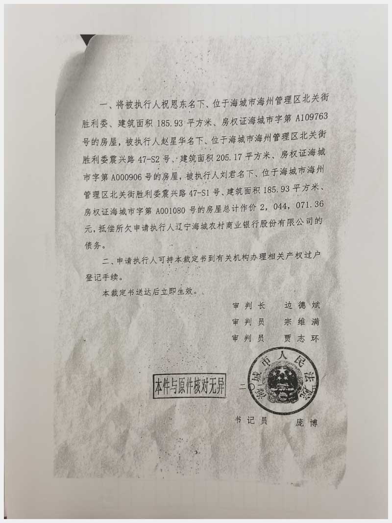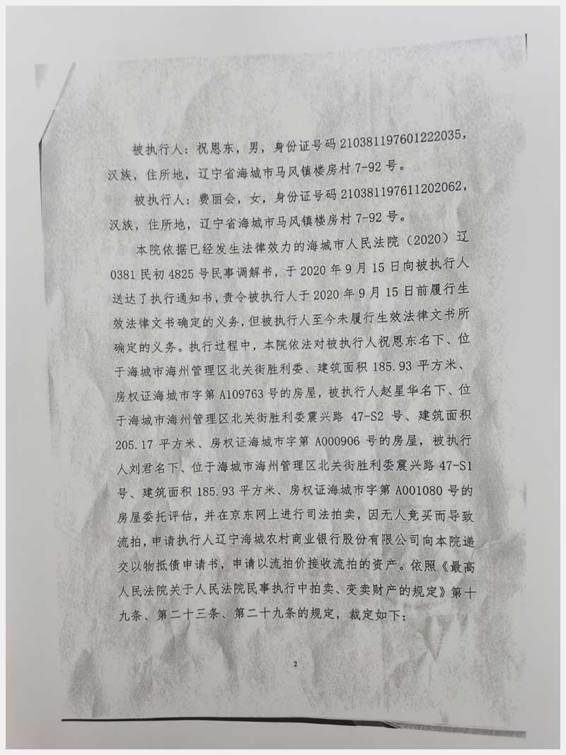 地址:海城市海州管理區(qū)北關街勝利委震興路47號 標的號:201