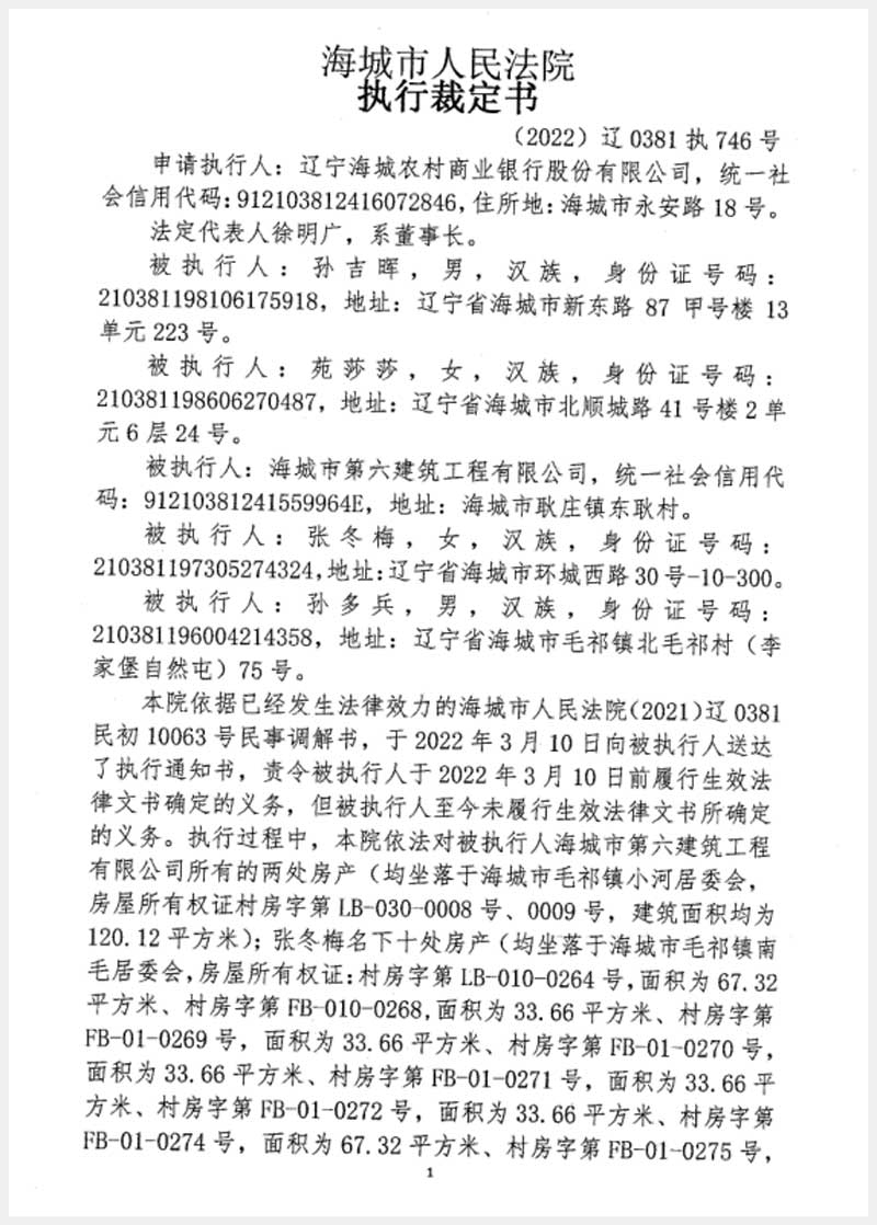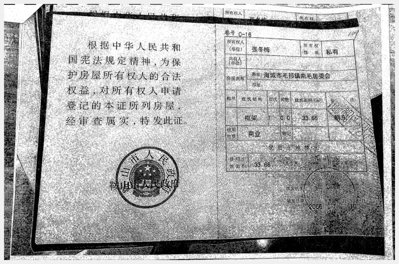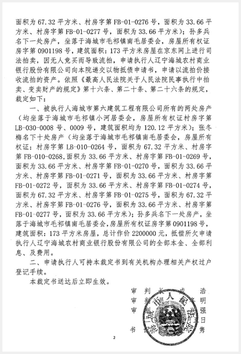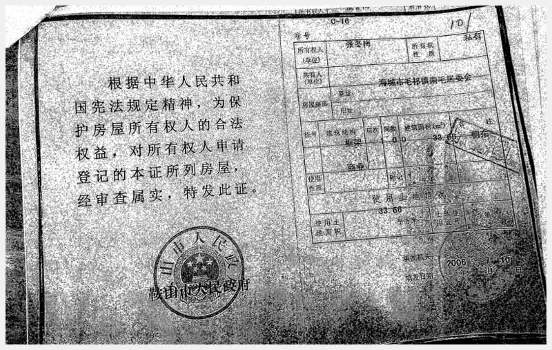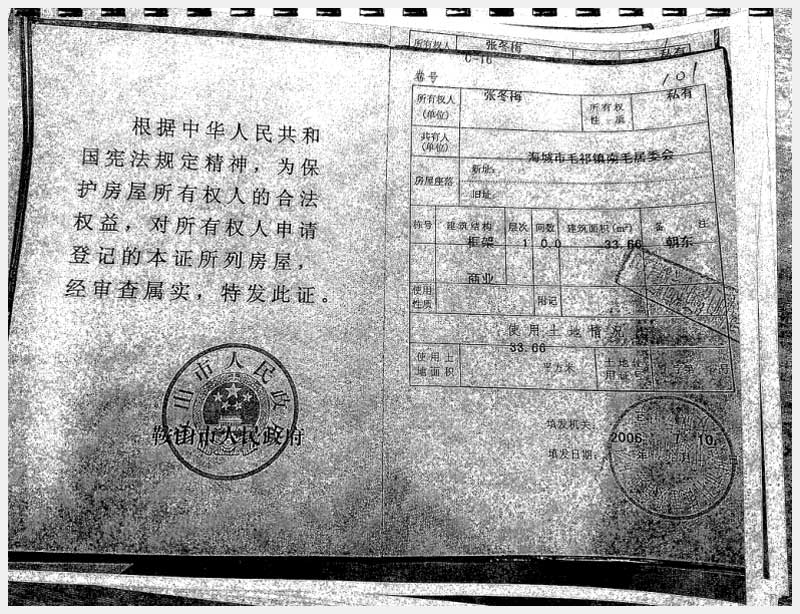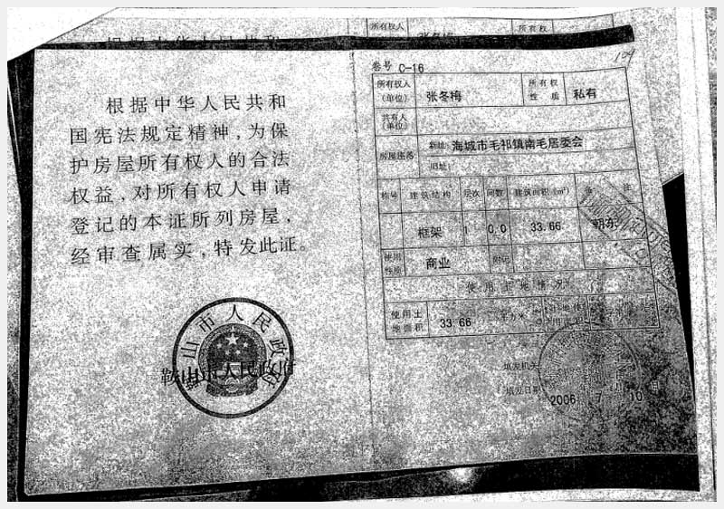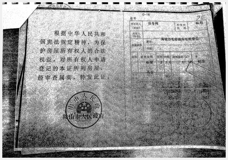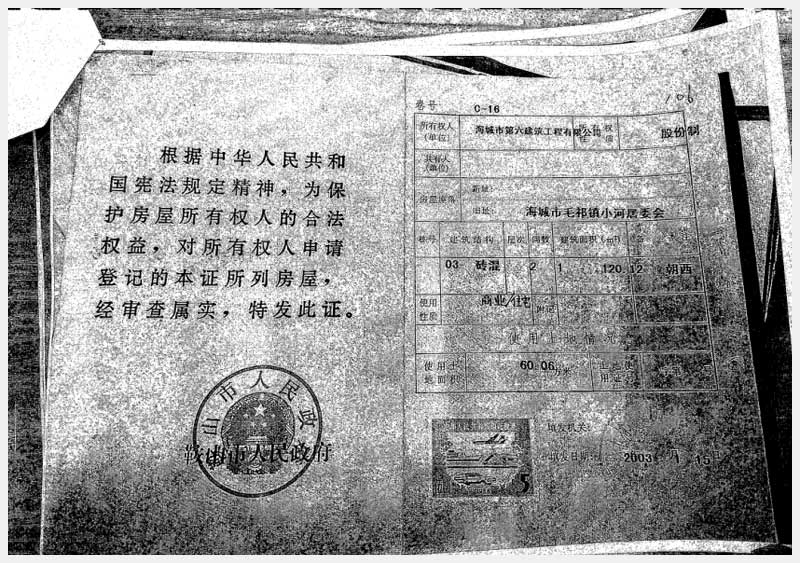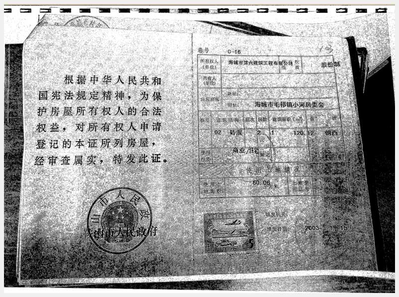 地址:海城市毛祁鎮(zhèn)南毛居委會(huì) 標(biāo)的號(hào):216-1