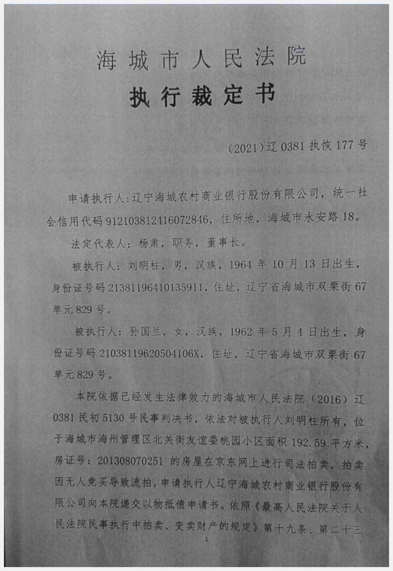 地址:海城市海州管理區(qū)北關(guān)街友誼委桃園小區(qū) 標(biāo)的號:228