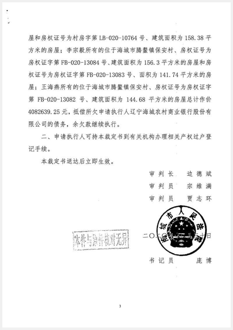 地址:海城市騰鰲鎮(zhèn)保安村 標(biāo)的號(hào):229