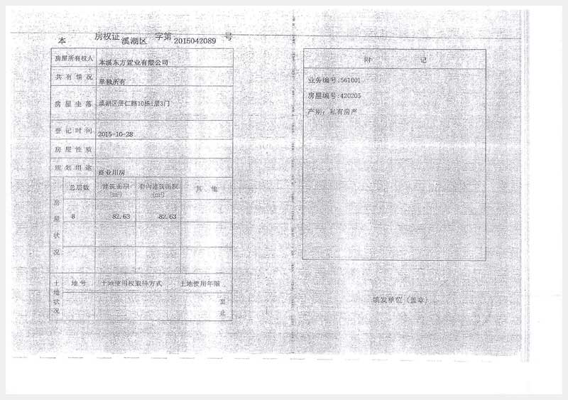 名稱:本溪市溪湖區(qū)居仁路10棟1層1門至9門房產(chǎn) 面積:1門:83.74㎡;2門:39.71㎡;3門:82.63㎡;4門:82.63㎡;5門:75.12㎡;6門:82.63㎡;7門:78.88㎡;8門:80.39㎡;9門:84.37㎡ 瀏覽次數(shù):910
