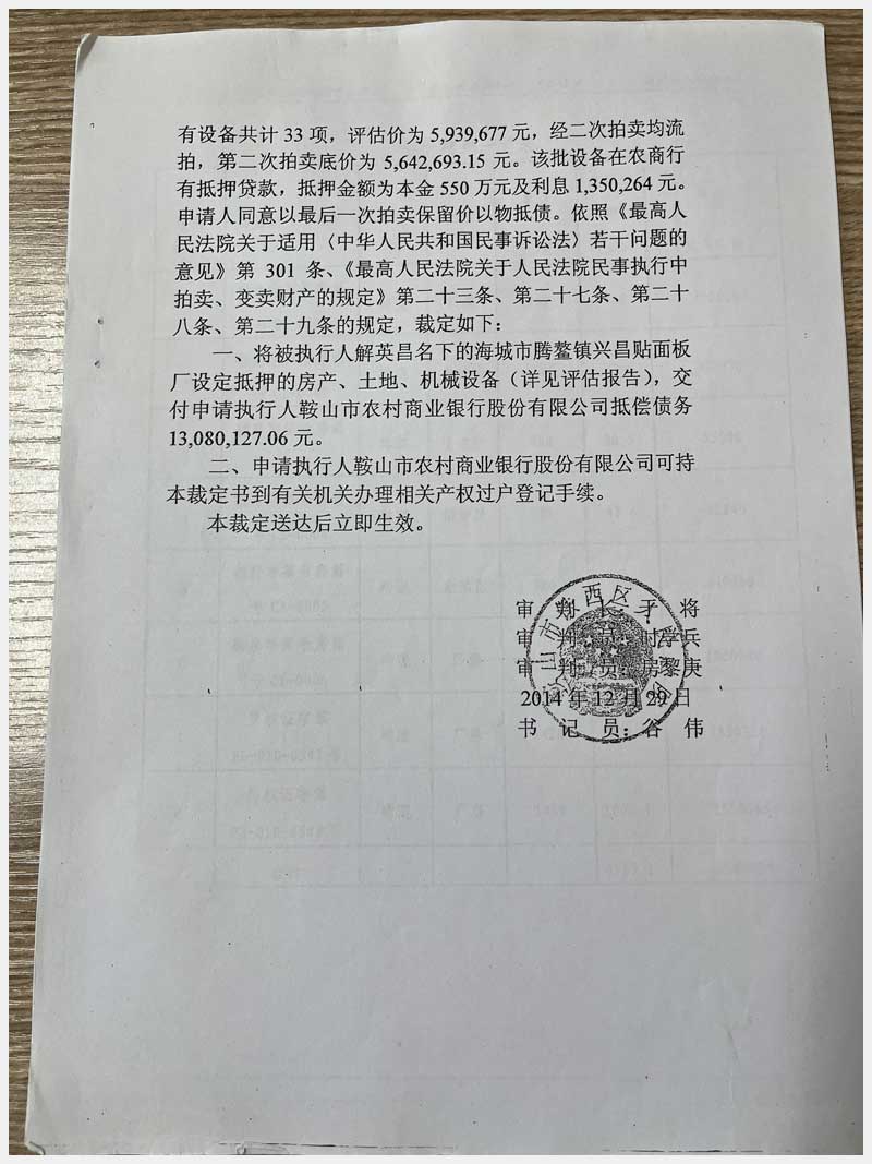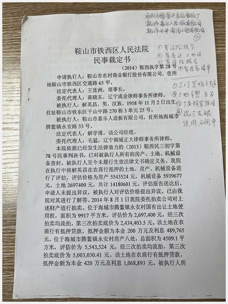 名稱:海城市騰鰲鎮(zhèn)永安路33號房產(chǎn)、土地使用權(quán)及機(jī)器設(shè)備 面積:房產(chǎn):4509㎡;土地:9917㎡;設(shè)備:46臺(套) 瀏覽次數(shù):1117