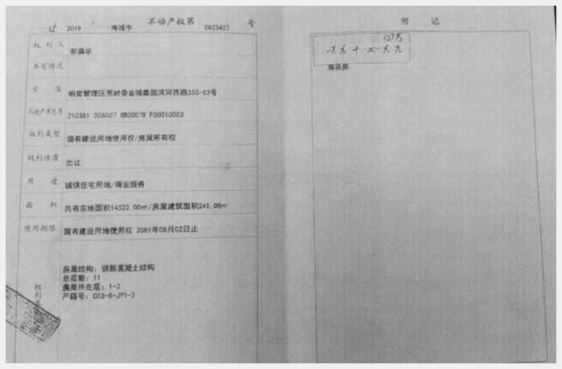 名稱:海城市響堂管理區(qū)荒嶺委金域嘉園濱河西路255-S1、S2、S3號房產(chǎn) 面積:有證:538.22㎡;無證:223㎡ 瀏覽次數(shù):895
