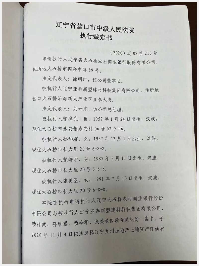 名稱:大石橋市金橋管理區(qū)太公堡村房產(chǎn)及土地使用權(quán) 面積:房產(chǎn):25088.57㎡;土地:36797㎡ 瀏覽次數(shù):880