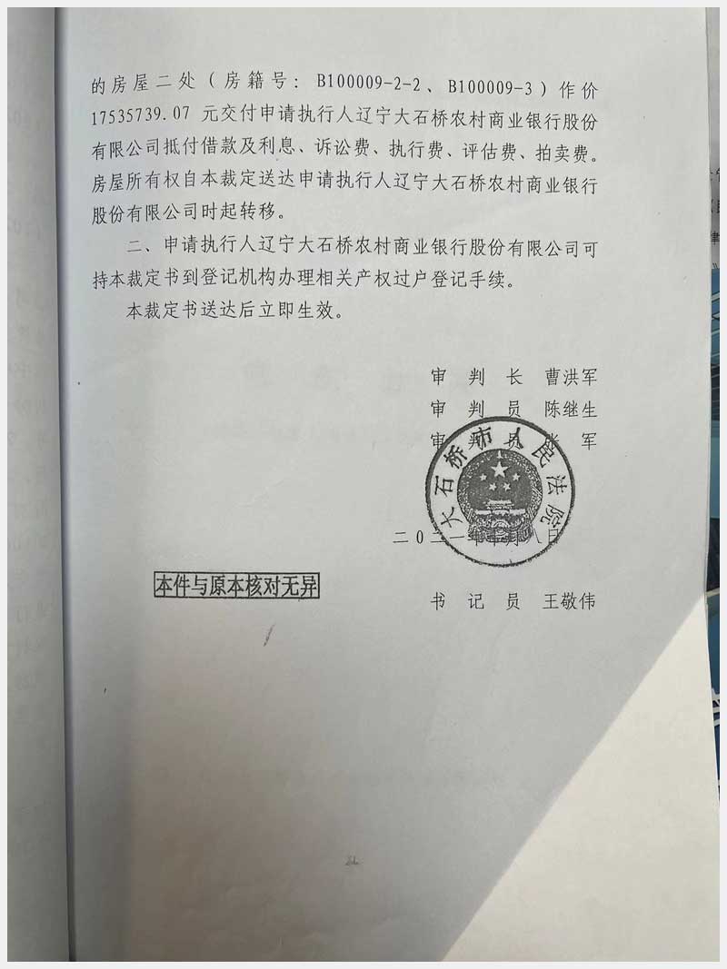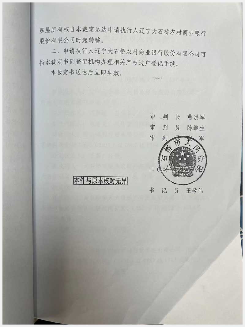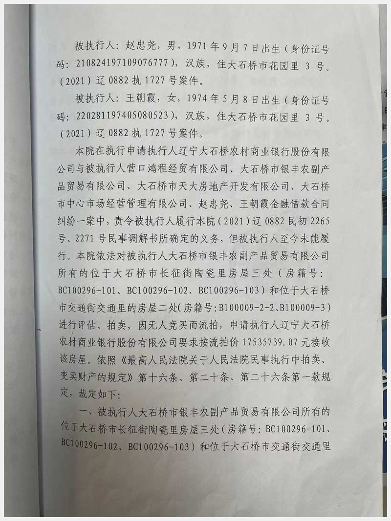 地址:大石橋市長征街朝陽里豪隆世家 標的號:8