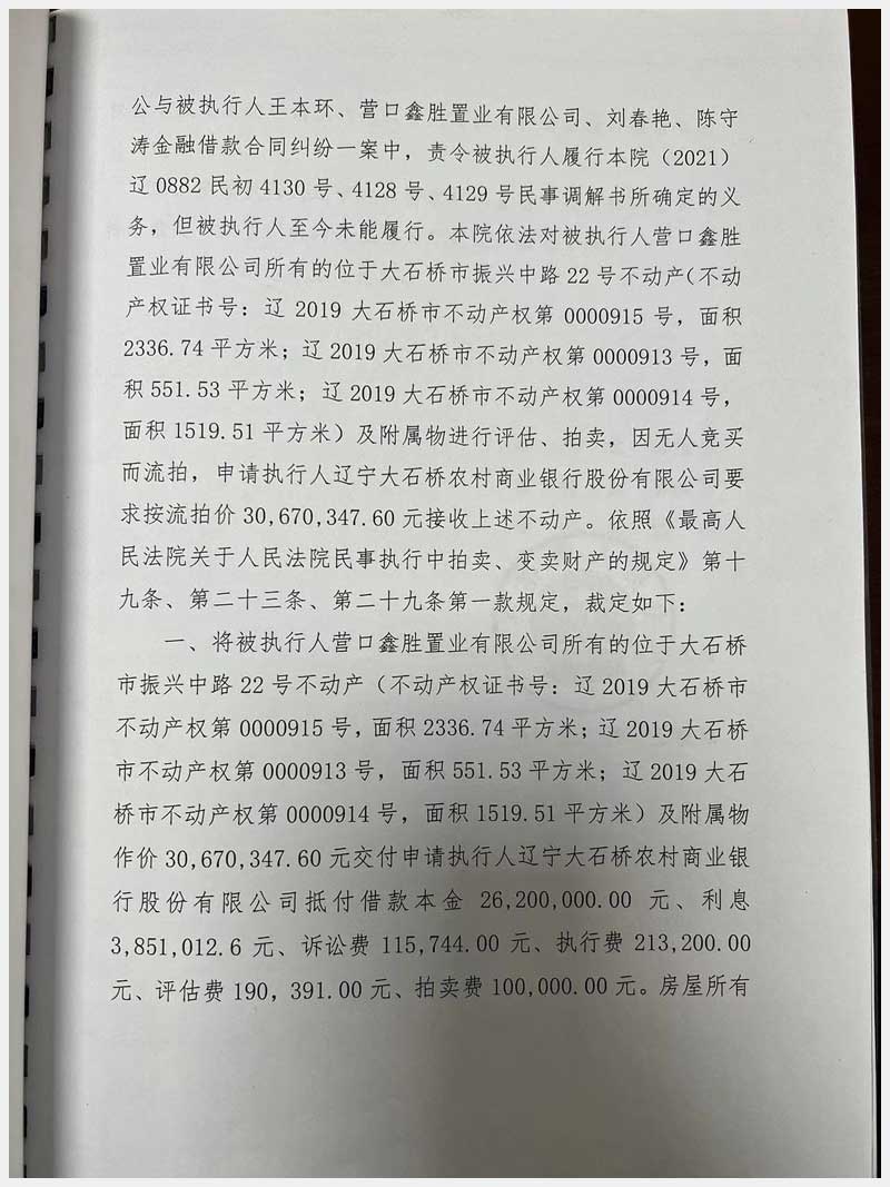10號(hào) 大石橋市振興中路22號(hào)(鑫盛綜合樓)1號(hào)樓1單元房產(chǎn)