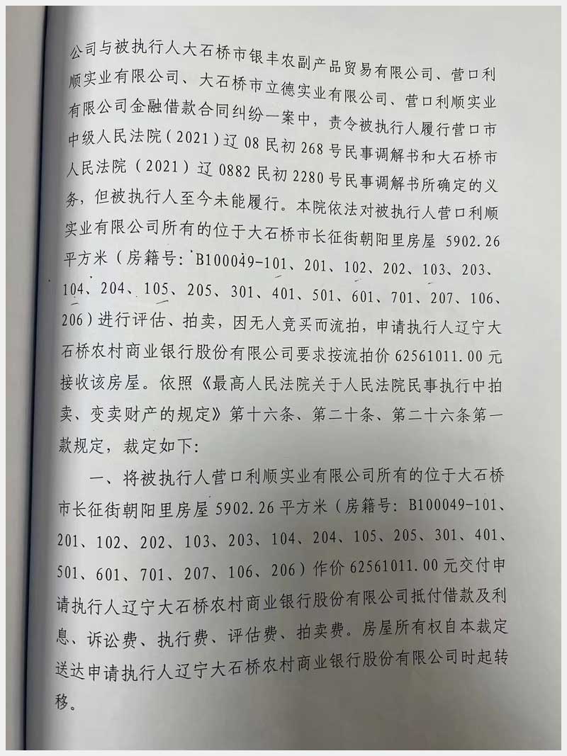 地址:大石橋市朝陽路29號豪隆世家 標的號:11