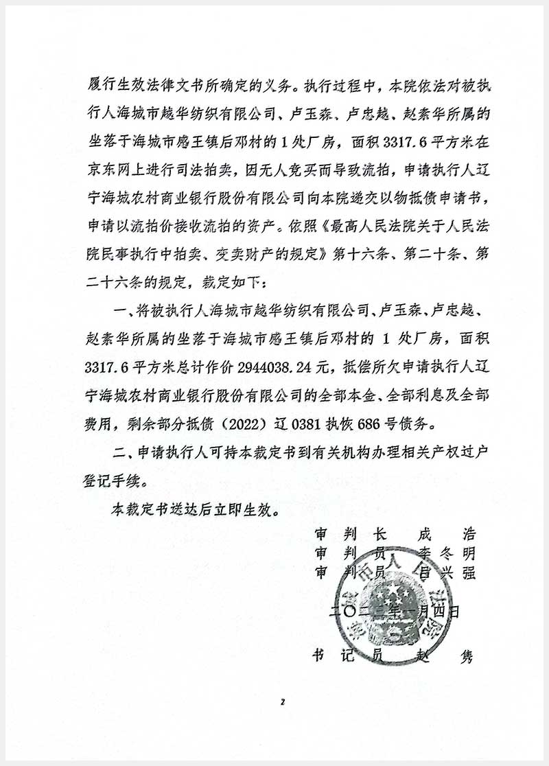 254號(hào) 海城市感王鎮(zhèn)后鄧村房產(chǎn)、土地及機(jī)器設(shè)備