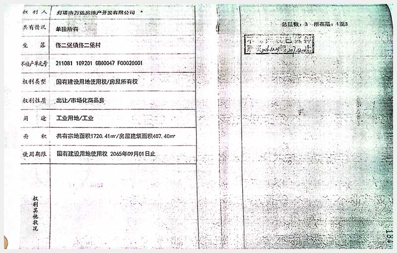 名稱:遼陽市燈塔市豐帝工業(yè)園15處房產(chǎn) 面積:349.3㎡—1197.86㎡ 瀏覽次數(shù):324