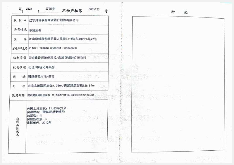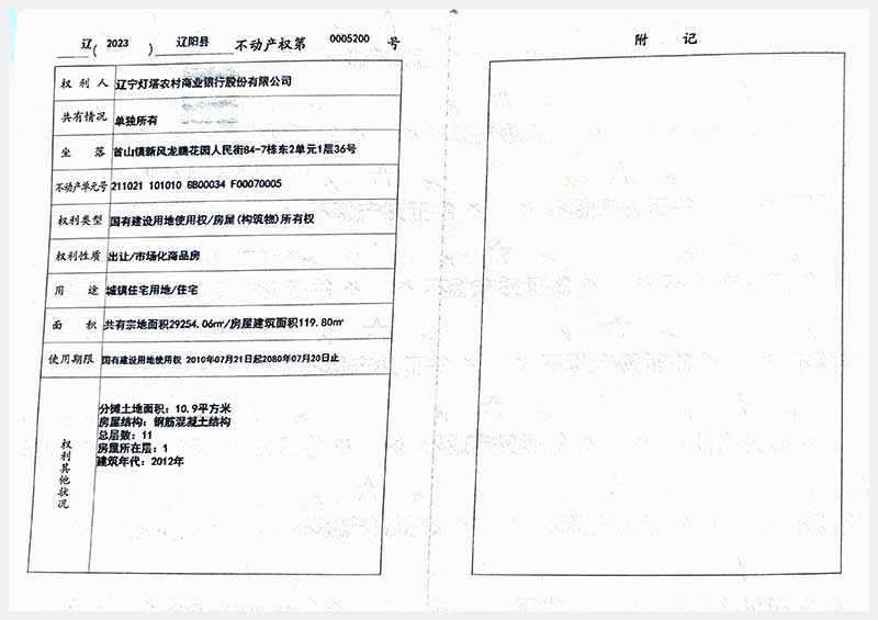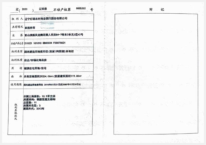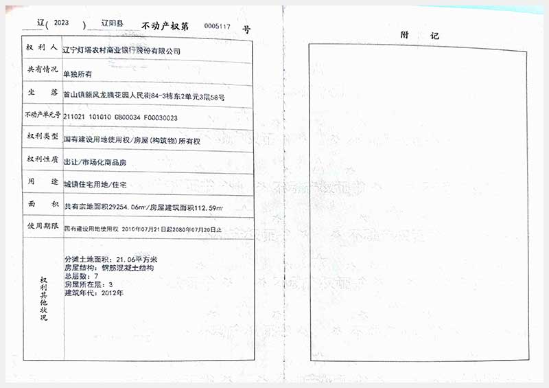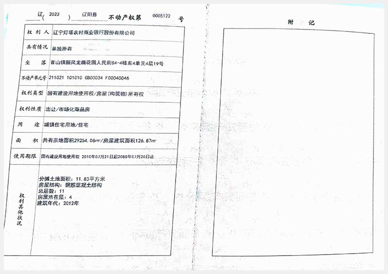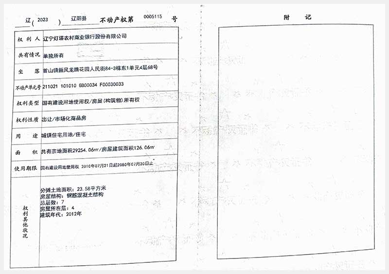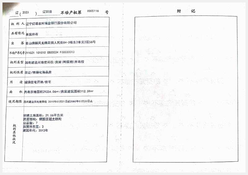 58號(hào) 遼陽(yáng)市首山鎮(zhèn)新風(fēng)龍騰花園人民街84棟房產(chǎn)