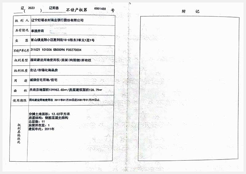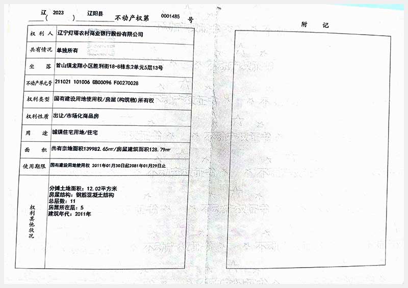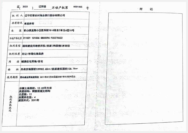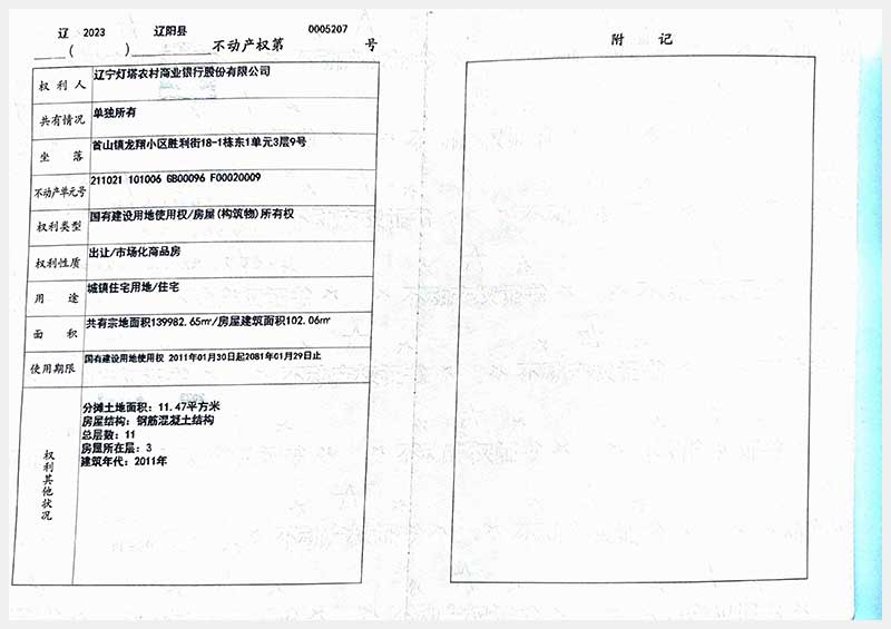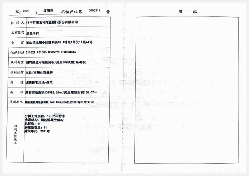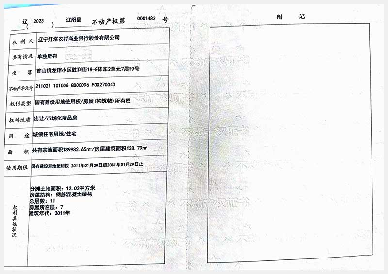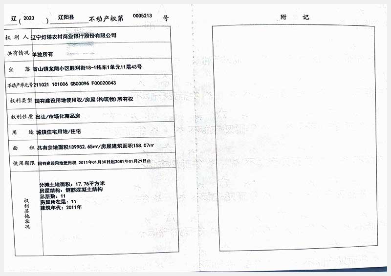 名稱:遼陽市首山鎮(zhèn)龍翔小區(qū)勝利街18棟房產(chǎn) 面積:102.06㎡—162.71㎡ 瀏覽次數(shù):328