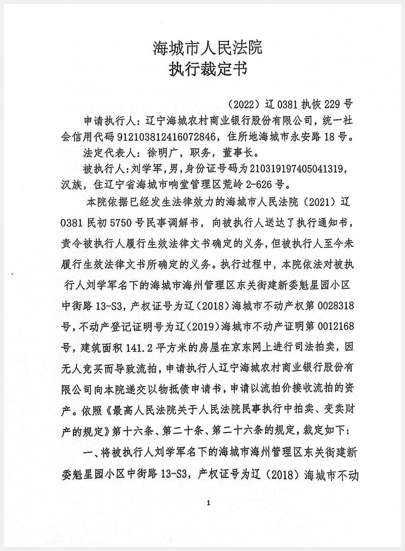 271號 海城市海州管理區(qū)東關街建新委魁星園小區(qū)中街路13—S3房產(chǎn)