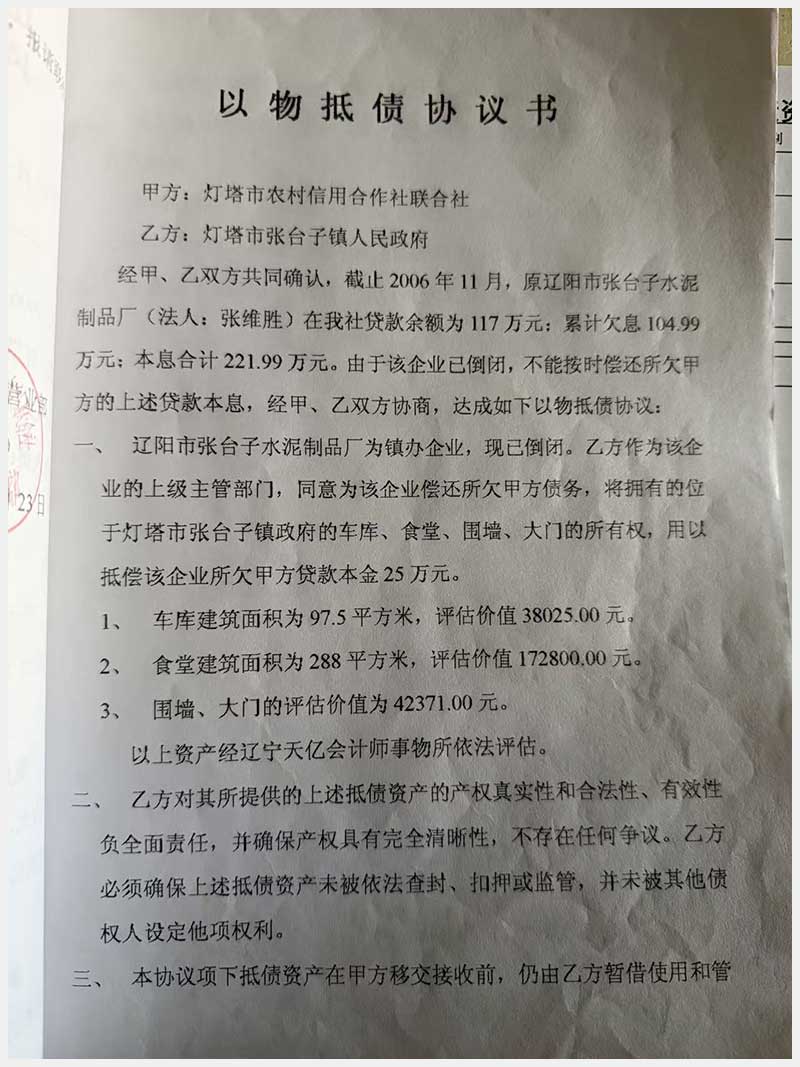 名稱:遼陽市文圣區(qū)張臺子水泥有限公司房產(chǎn)及土地使用權(quán) 面積:房產(chǎn):5496.5㎡;土地:3632.27㎡ 瀏覽次數(shù):31