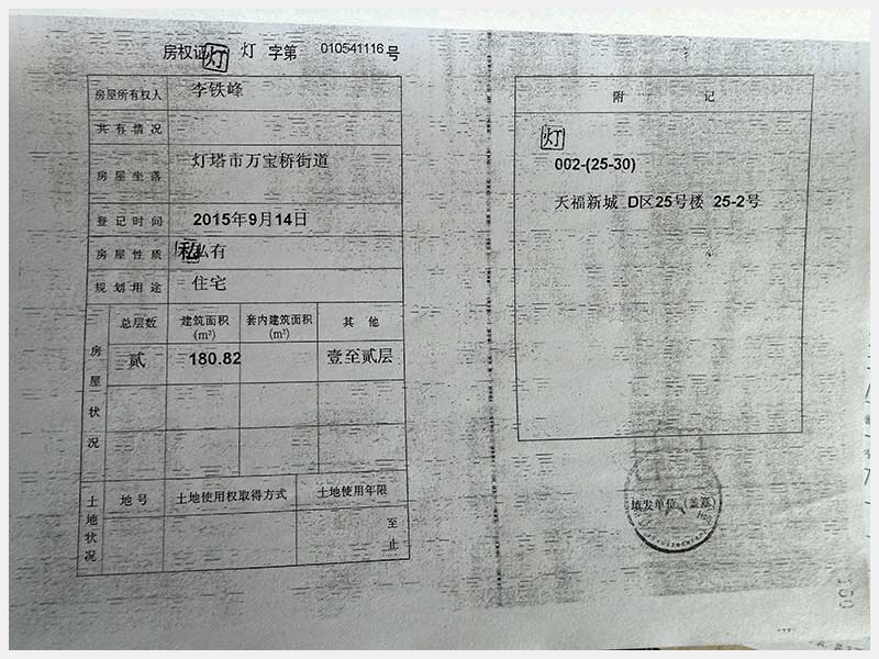 名稱:燈塔市萬寶橋街道天福新城D區(qū)25號(hào)樓25-2號(hào)房產(chǎn) 面積:180.82㎡ 瀏覽次數(shù):52