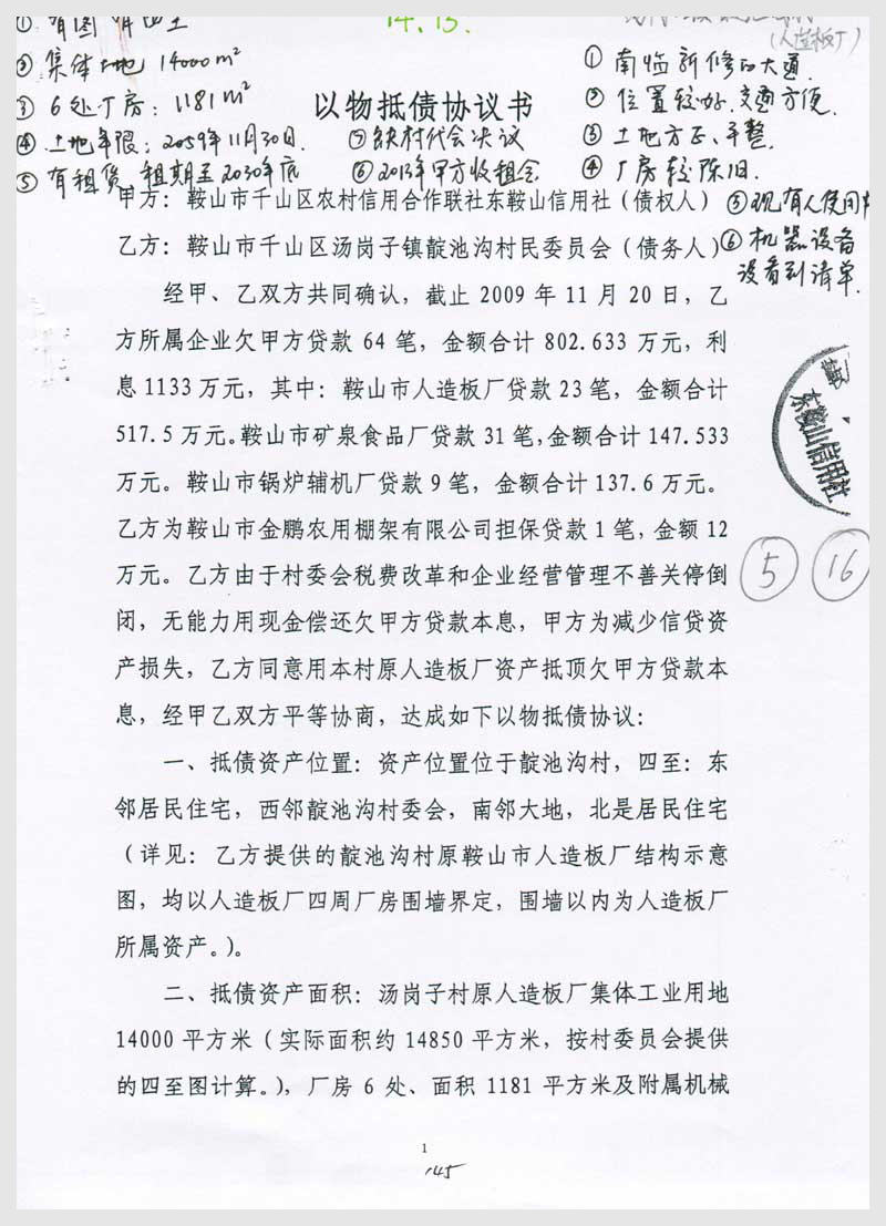 14-15號 靛池溝村原鞍山市人造板廠廠房及集體工業(yè)用地使用權(quán)