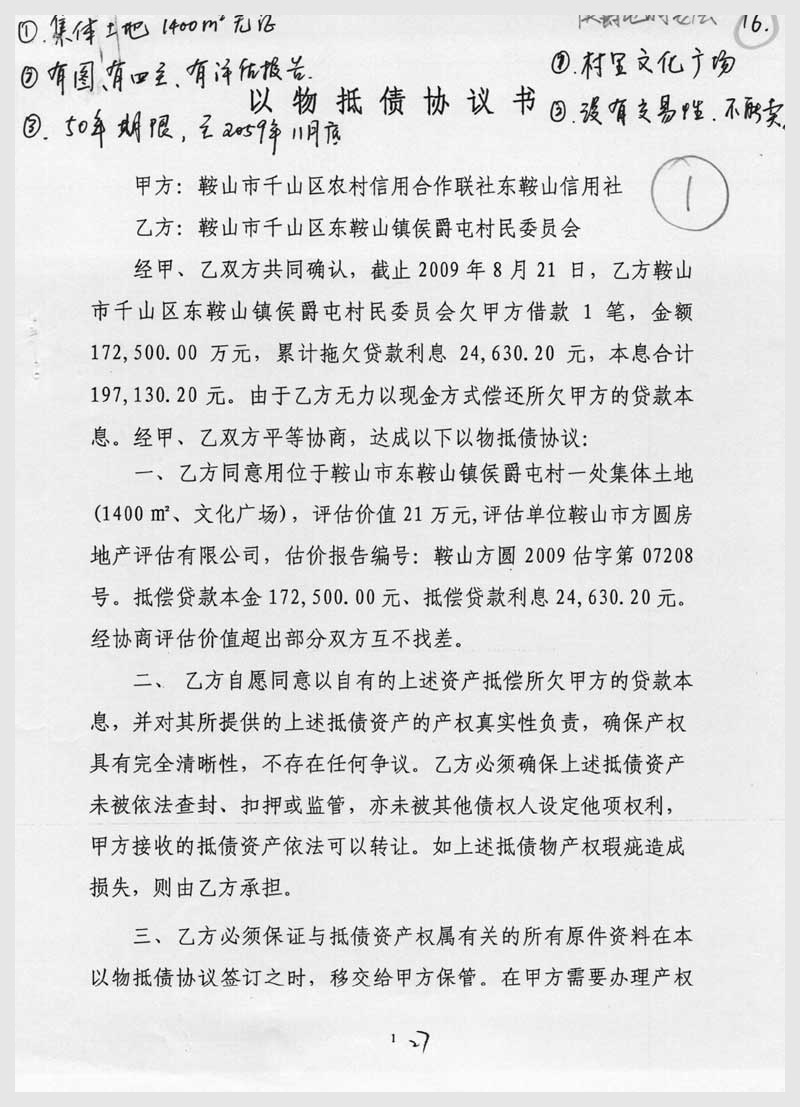 16號(hào) 鞍山市東鞍山鎮(zhèn)侯爵屯村集體土地使用權(quán)