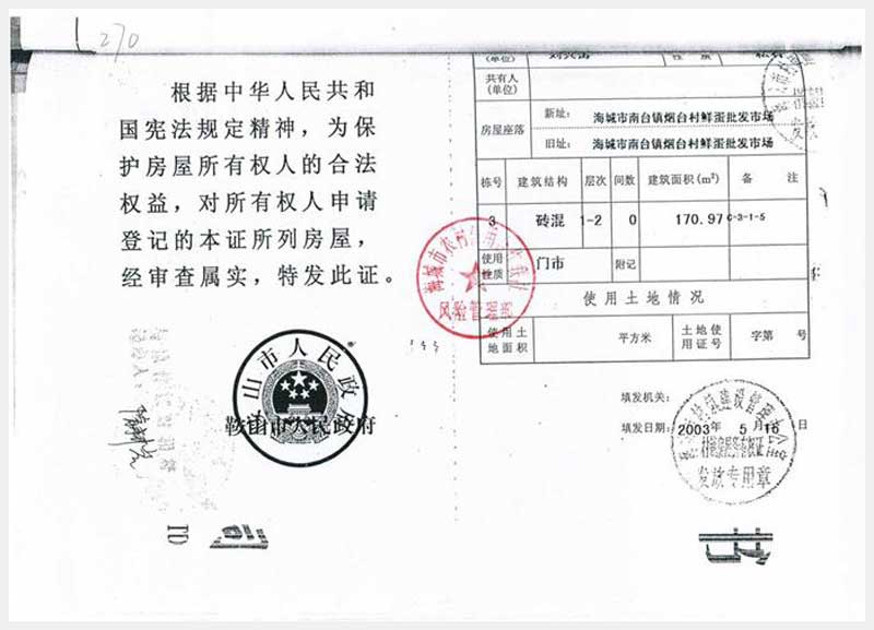 名稱:海城市南臺鎮(zhèn)煙臺村鮮蛋批發(fā)市場房產 面積:170.97㎡ 瀏覽次數(shù):2403
