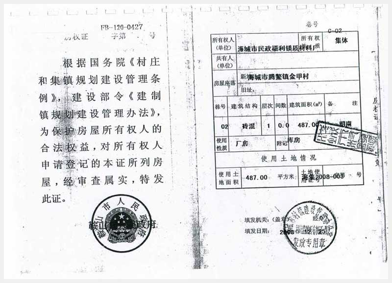 322號 位于海城市騰鰲鎮(zhèn)金甲村廠房、 集體土地使用權(quán)
