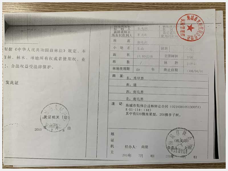 名稱:海城市毛祁鎮(zhèn)南毛村的林權 面積:13.65公頃 瀏覽次數(shù):3141
