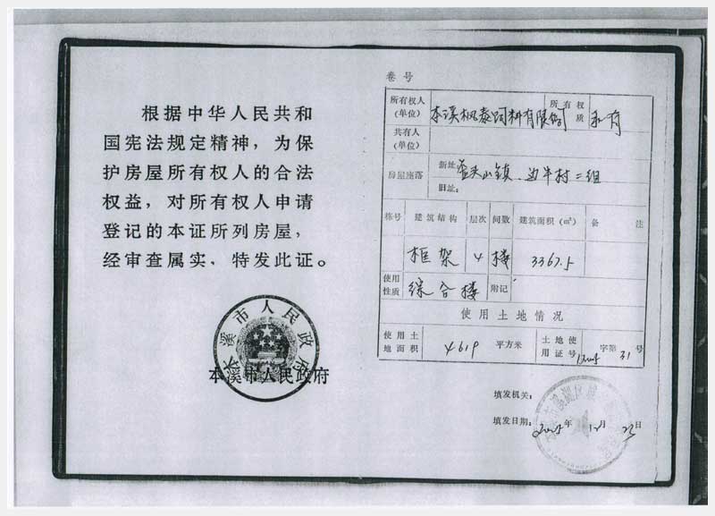 20號 本溪市溪湖區(qū)歪頭山鎮(zhèn)邊牛村房產(chǎn)、土地及機器設(shè)備