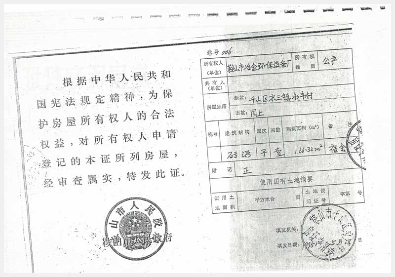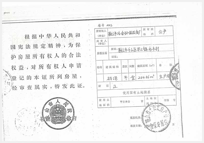 4號(hào) 鞍山市千山區(qū)宋三鎮(zhèn)永豐村廠(鐵西原九道街265號(hào)乙)房及集體土地使用權(quán)