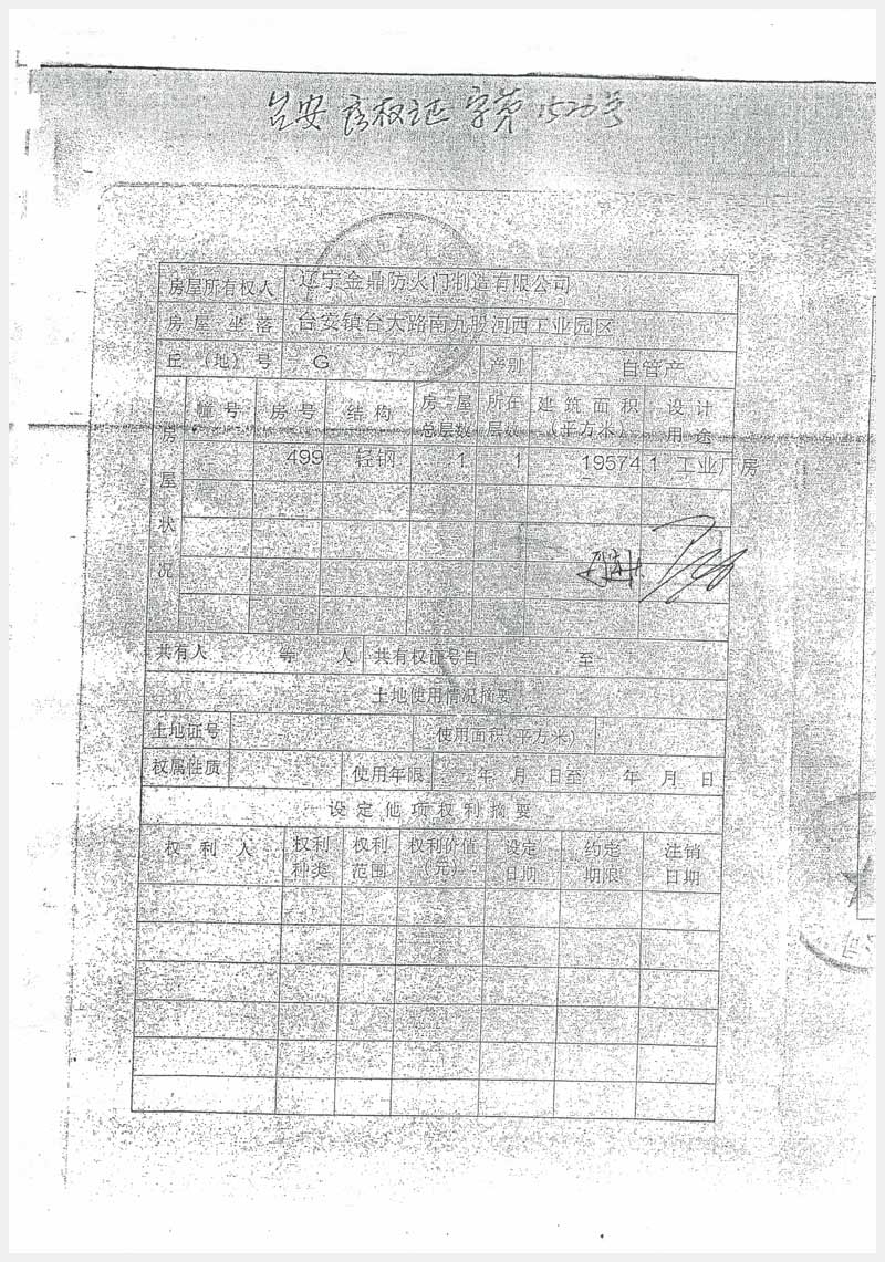 43號(hào) 鞍山市臺(tái)安縣臺(tái)安鎮(zhèn)臺(tái)大路南九股河西工業(yè)園區(qū)的工業(yè)用地及地上建筑物