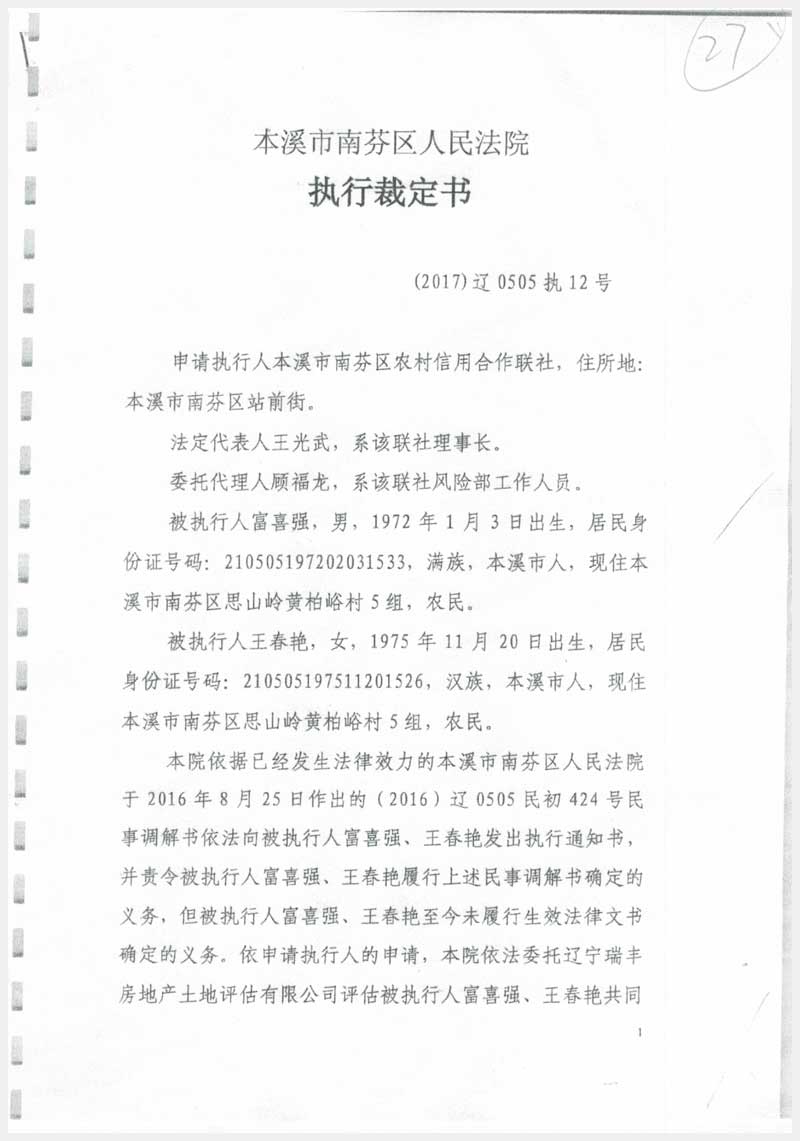 27號(hào) 本溪市南芬區(qū)思山嶺鄉(xiāng)黃柏峪村七組房產(chǎn)3處