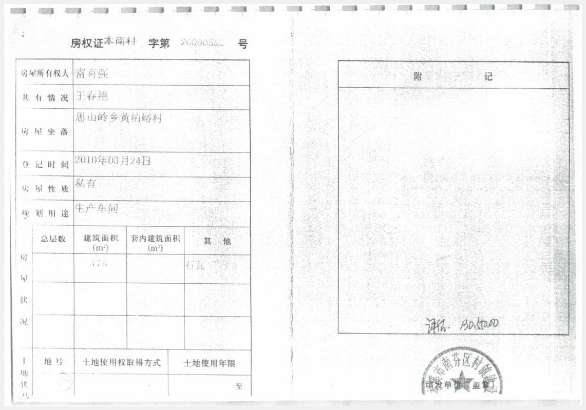 名稱:本溪市南芬區(qū)思山嶺鄉(xiāng)黃柏峪村七組房產(chǎn)3處 面積:房產(chǎn):391㎡/2個(gè)機(jī)井/機(jī)井房:7.5㎡/1套動(dòng)力電 瀏覽次數(shù):1773