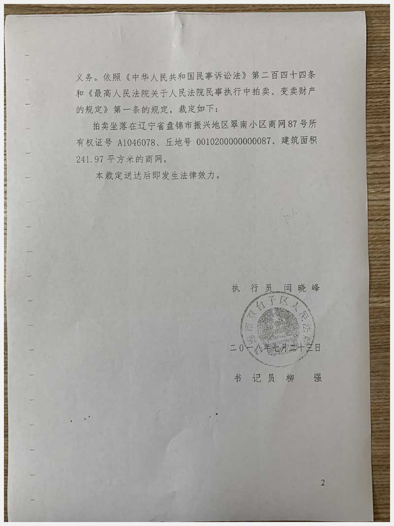 地址:盤錦興隆臺(tái)區(qū)振興地區(qū)翠南小區(qū) 標(biāo)的號(hào):28