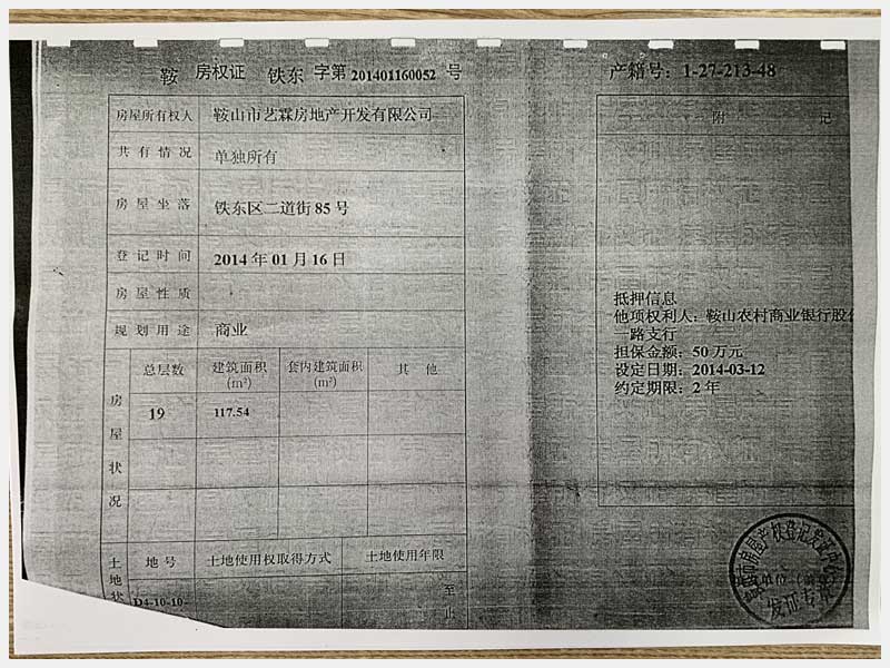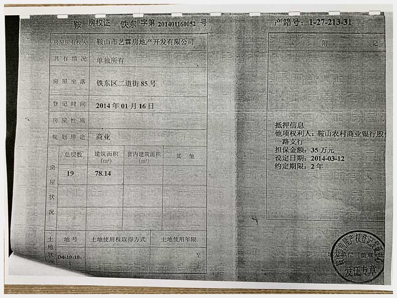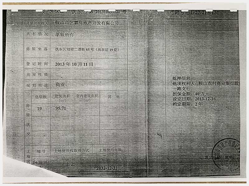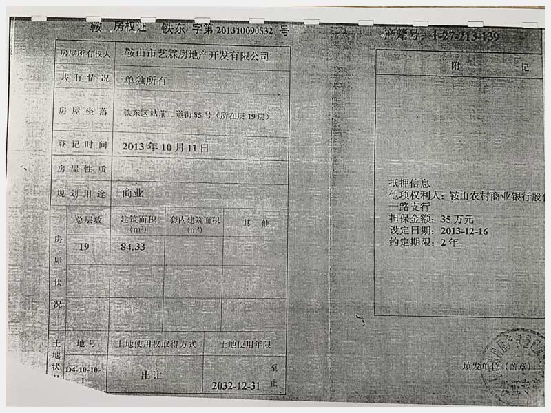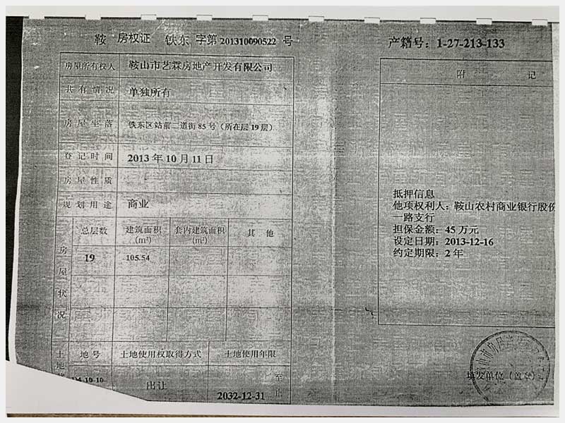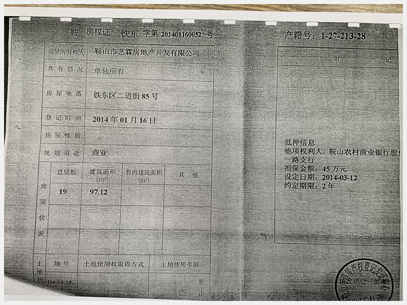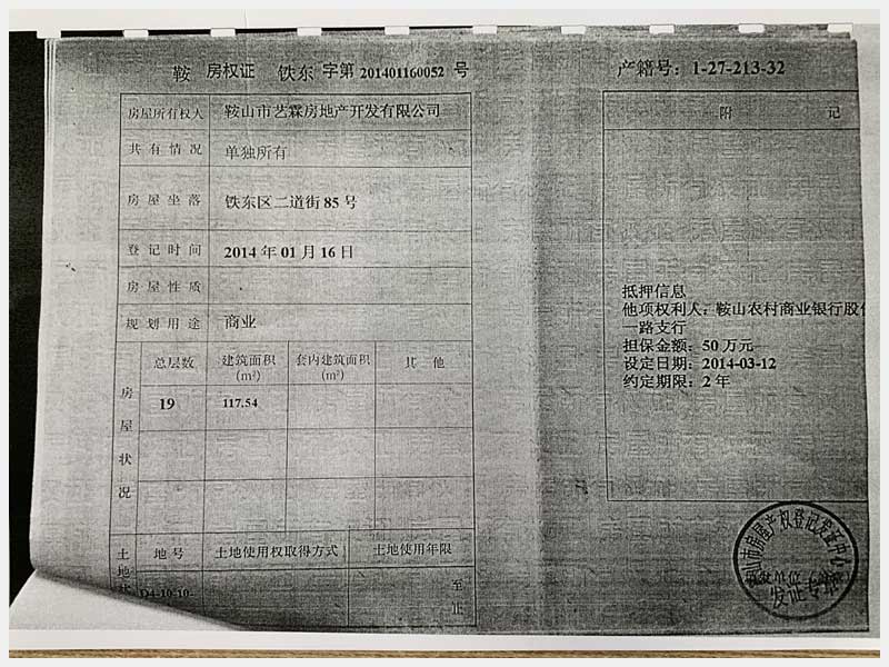 名稱:鞍山市鐵東區(qū)二道街85號房產(chǎn) 面積:1873.32㎡ 瀏覽次數(shù):1584