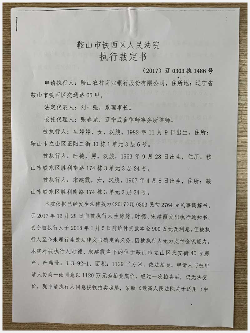 地址:鞍山市立山區(qū)永安街 標(biāo)的號(hào):58