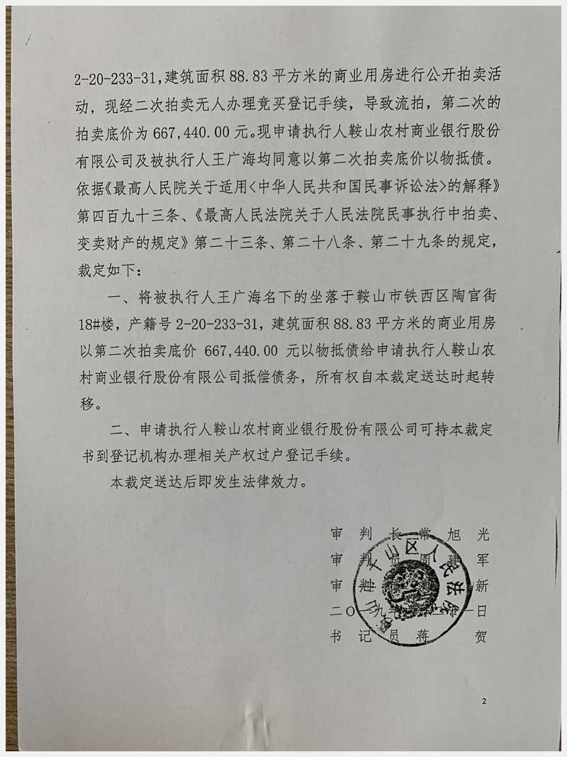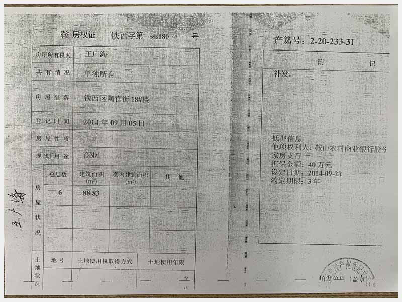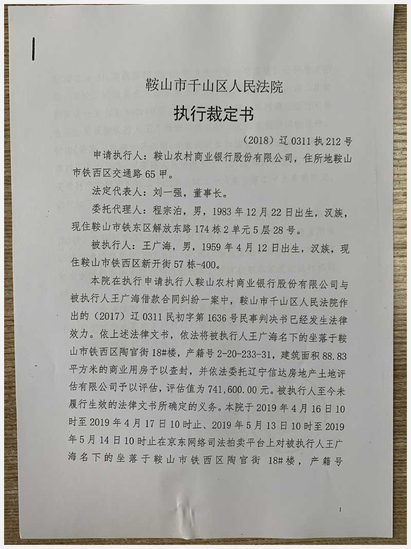 地址:鞍山市鐵西區(qū)陶官街 標(biāo)的號:66