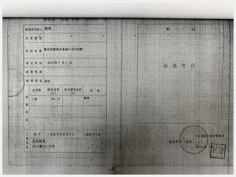 地址:黃沙坨鎮(zhèn)秀水金城小區(qū) 標的號:48